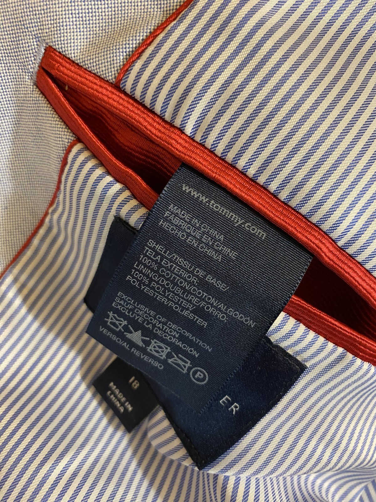 2025 TOMMY HILFIGER Boys Teen Light Blue Suit Blazer Sport Coat Sz 18 Cotton