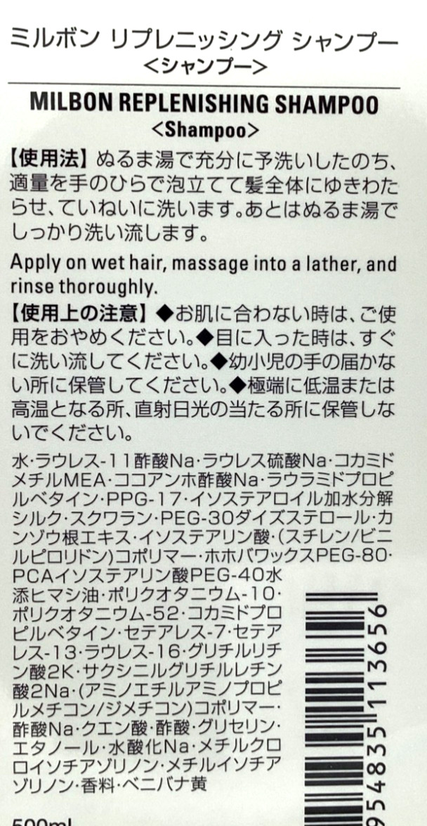 MILBON REPLENISHING MOISTURE Shampoo 500ml for JAPAN
