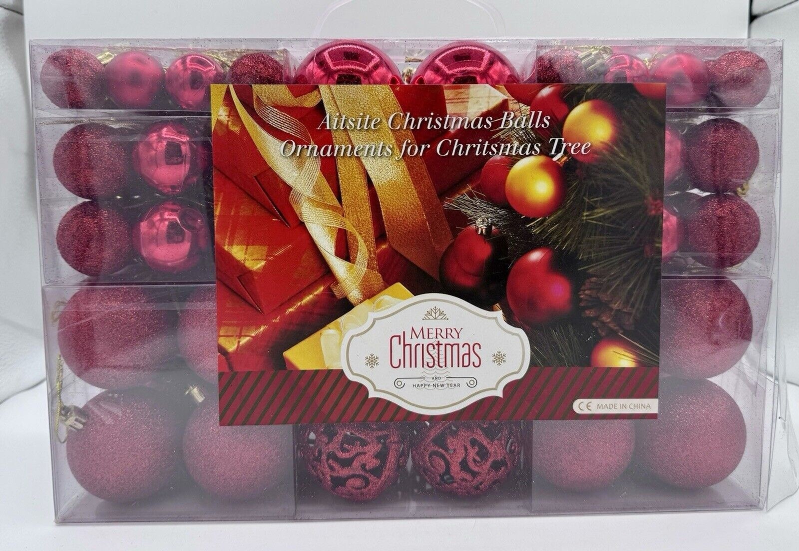 как выглядит 2- Sets Christmas Tree Ornaments Balls Pack Of 100 Assorted Red Baubles Holiday фото
