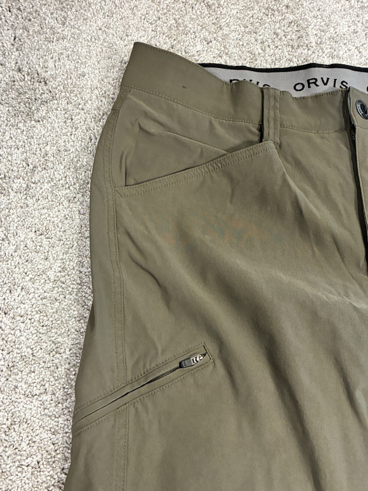 Orvis Men s 32x30 Olive Green Tech Pants Hiking Fishing Water Repellent Stretch