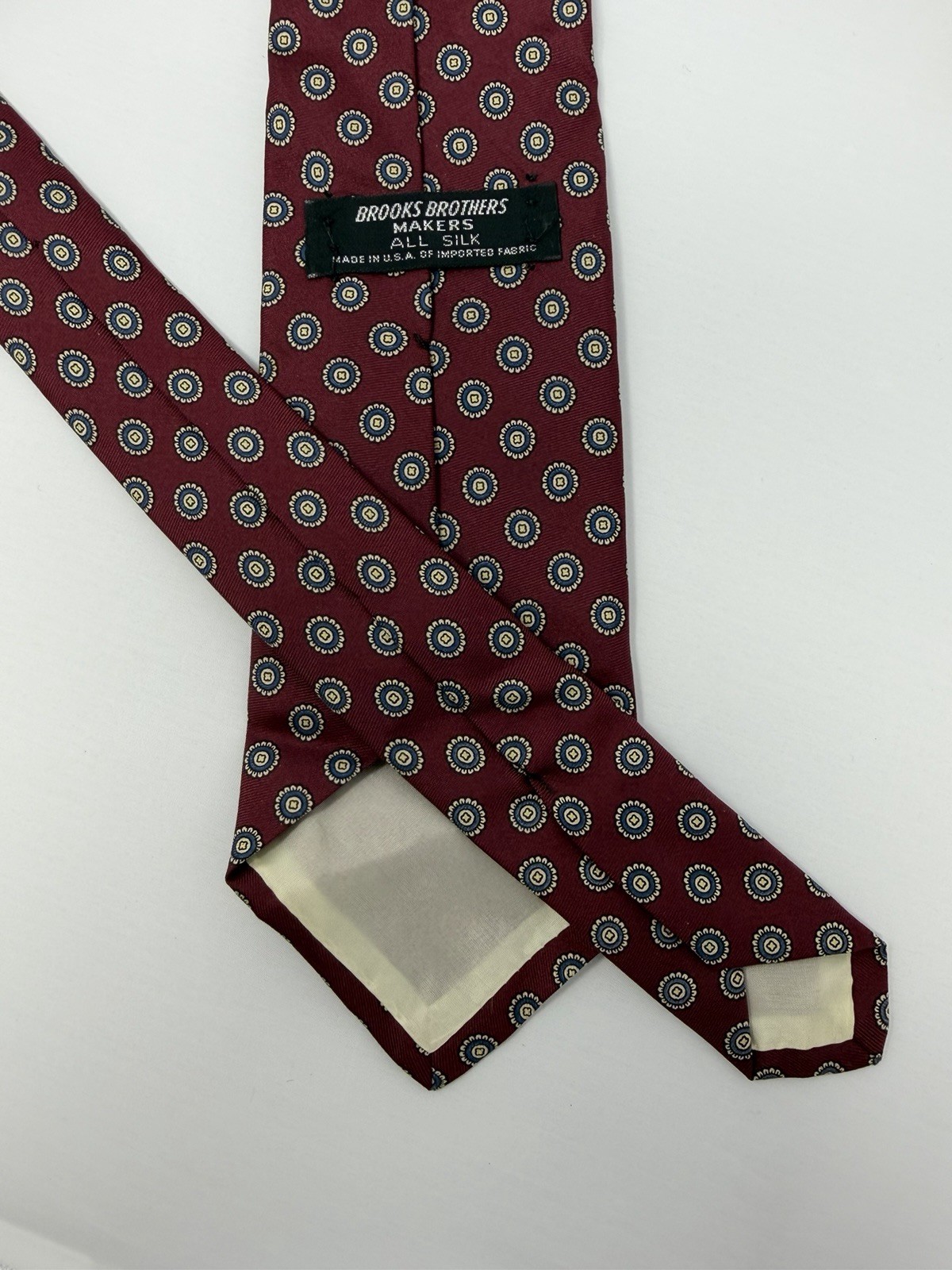 Vintage Brooks Brothers Silk Tie Burgundy Medallion Pattern Classic 3 58