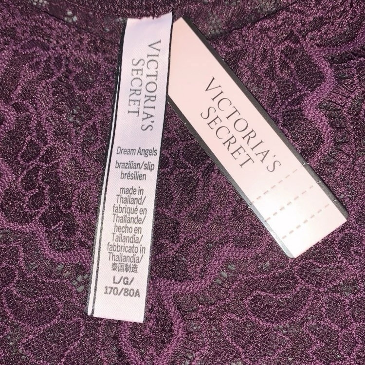 как выглядит NWT Victoria s Secret Dream Angels Corded Lace Brazilian Panty Violet Size L фото