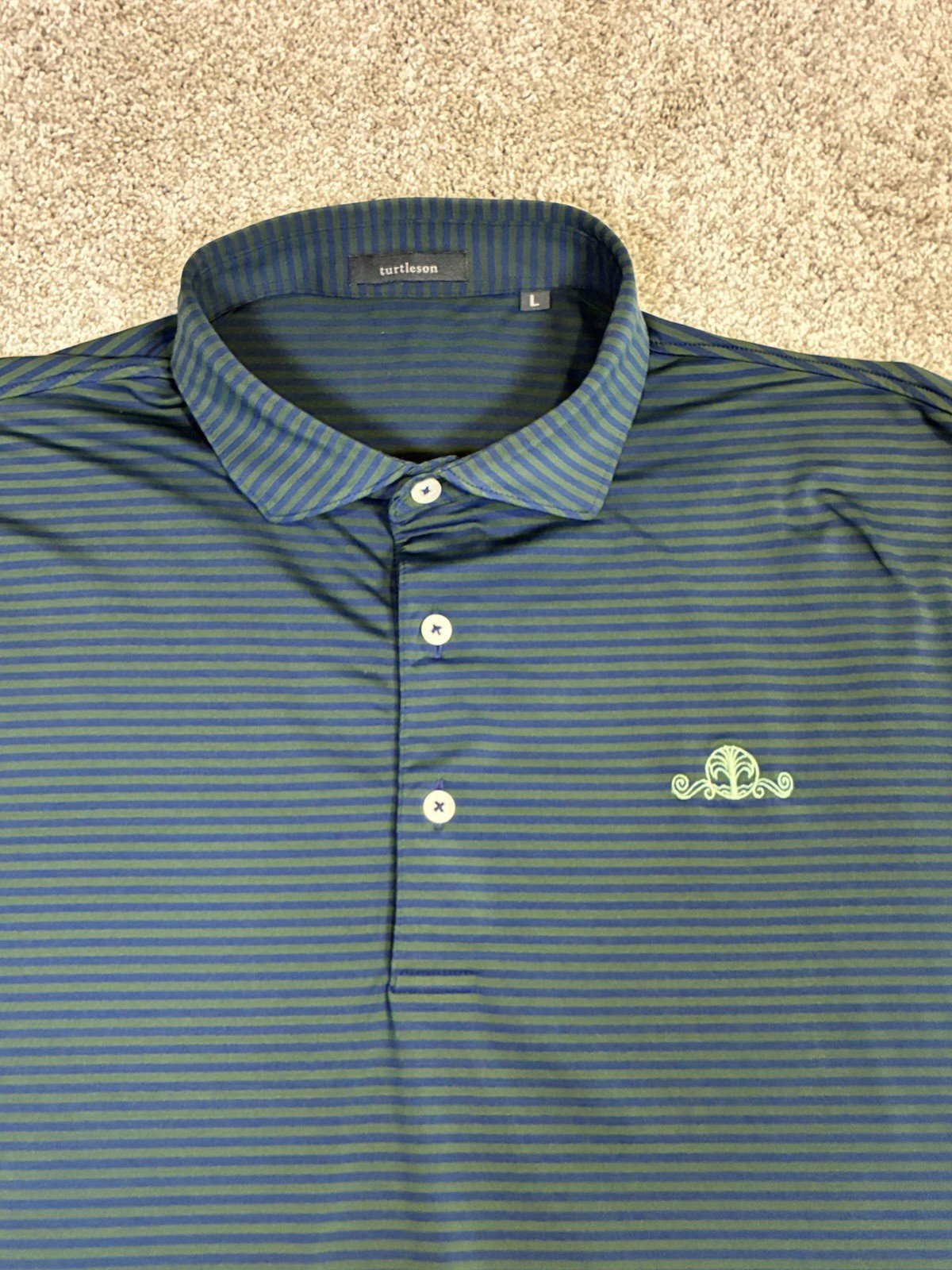 Turtleson Golf Mens Large Green Blue Striped Lightweight Performance Polo Logo