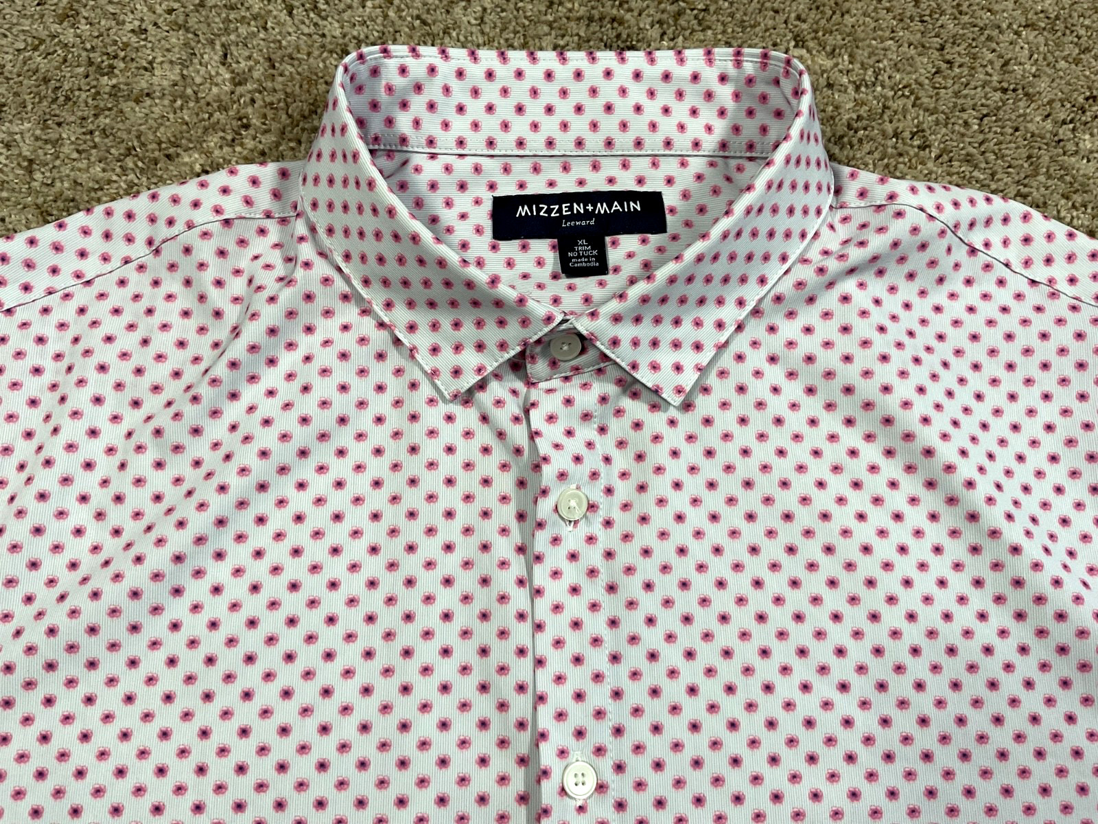 MIZZEN MAIN Leeward Shirt Mens XL Trim No Tuck Button Down White w/Pink Flowers