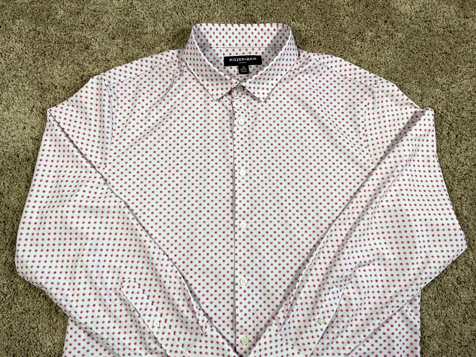 как выглядит MIZZEN MAIN Leeward Shirt Mens XL Trim No Tuck Button Down White w/Pink Flowers фото