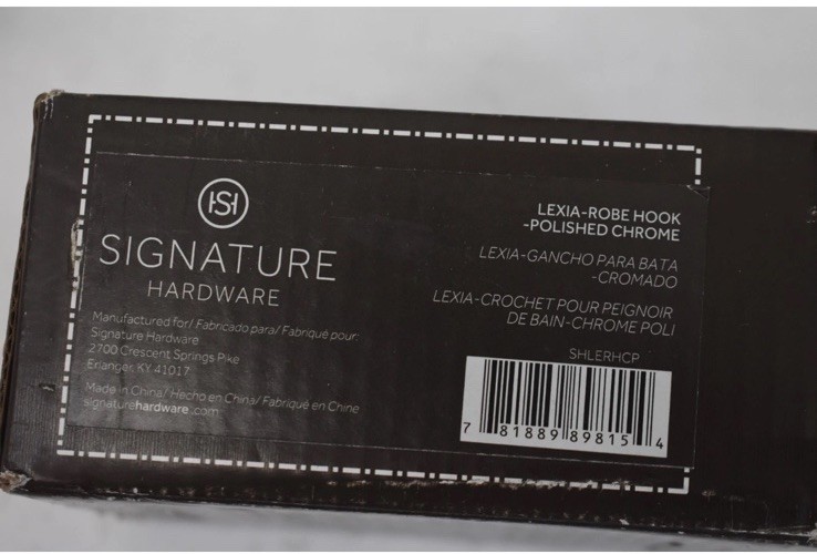 Signature Hardware Lexia Single Robe Hook SHLERHCP Polished Chrome New E51