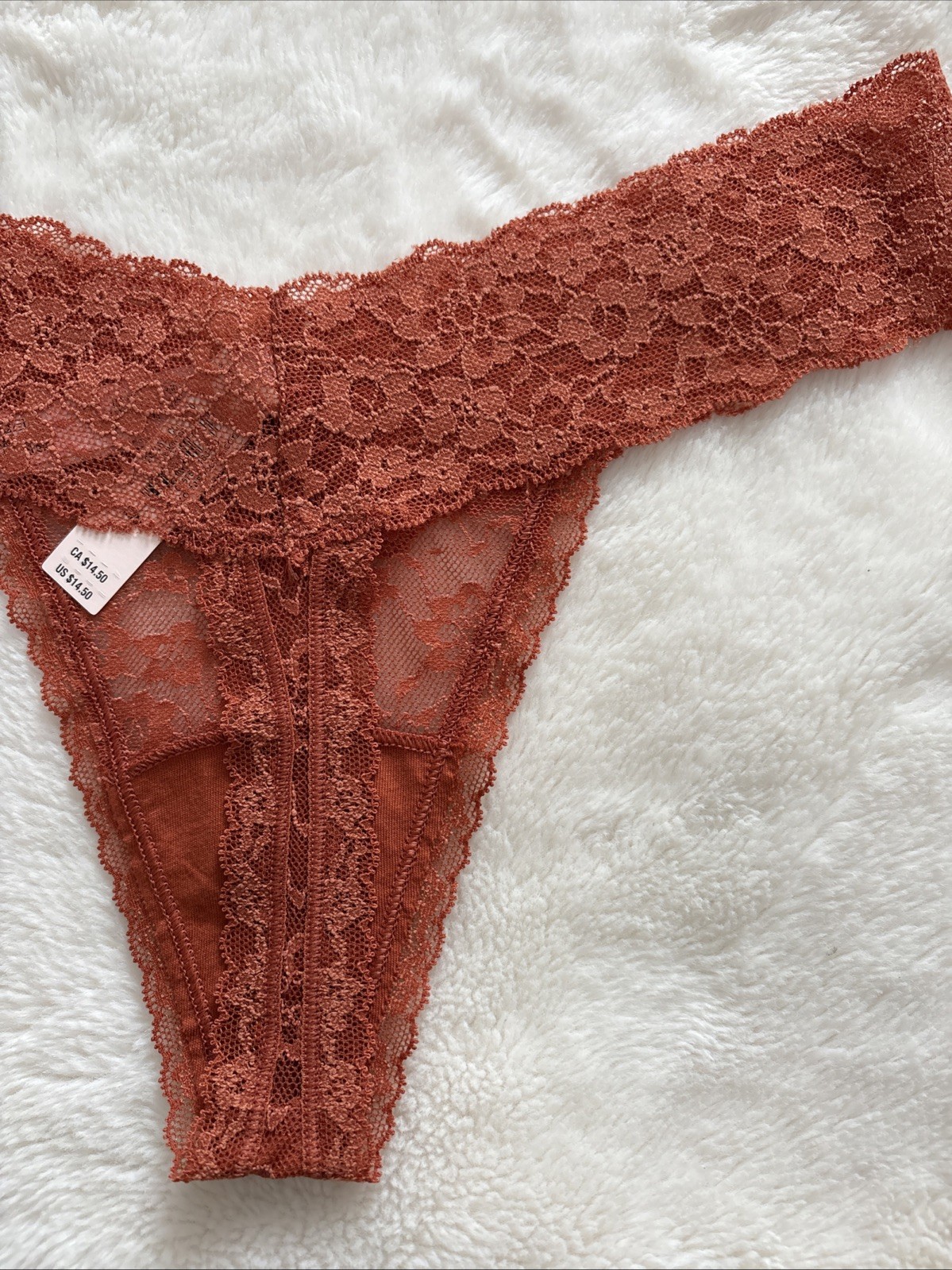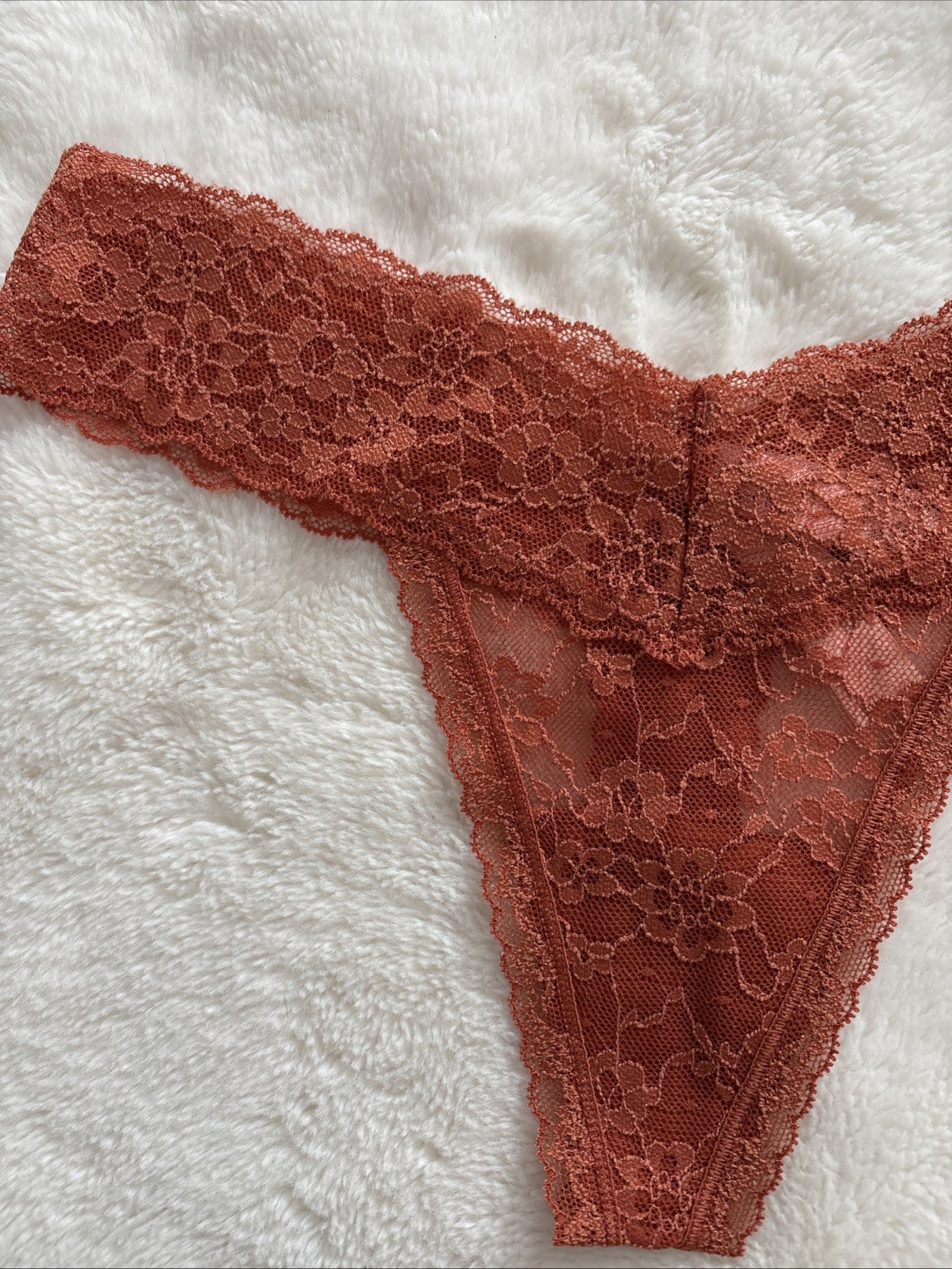 как выглядит Victorias Secret Panties Thong Panty The Lacie Floral Lace Rust Orange Medium M фото