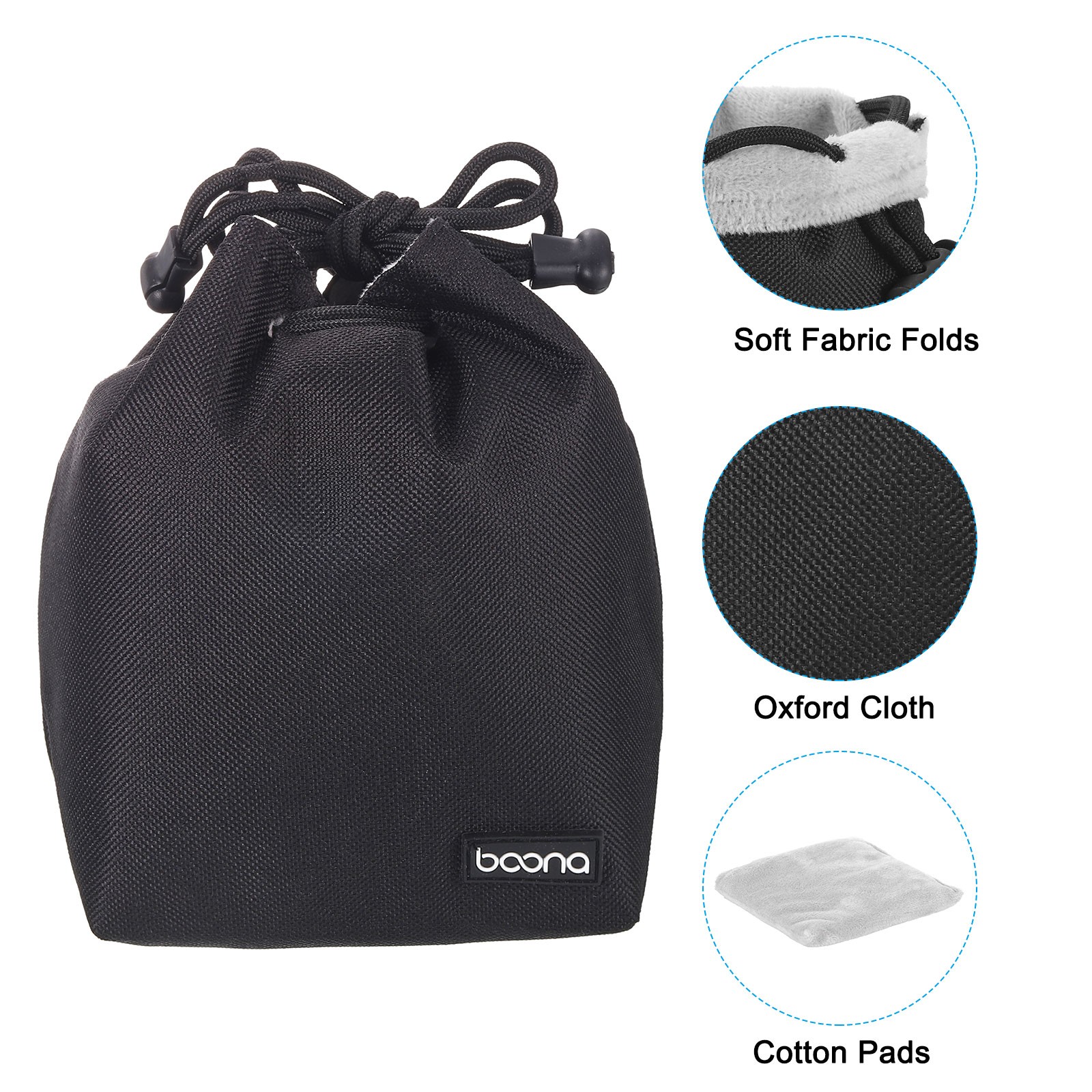 Soft Drawstring Lens Case with Cotton Pad 6.69 x 4.72, Black