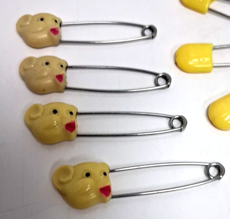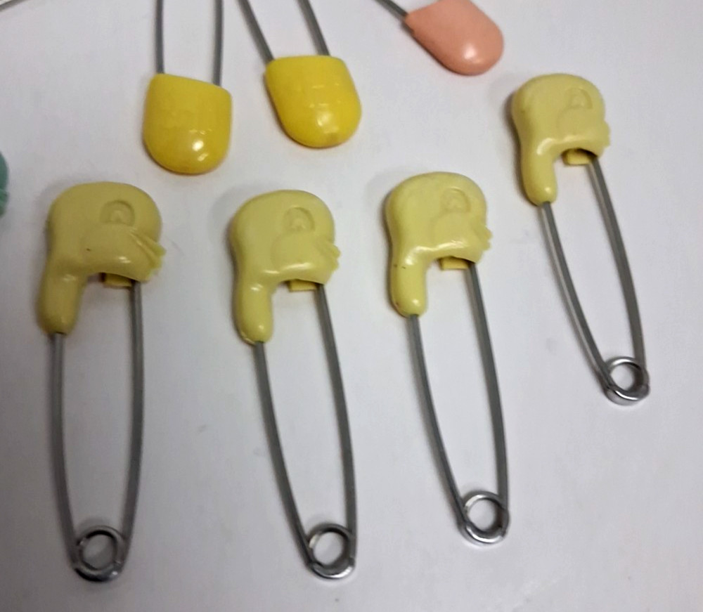 Lot of 22 Vintage Diaper Safety Pins Animal Heads, Plain, Yellow Pink Blue