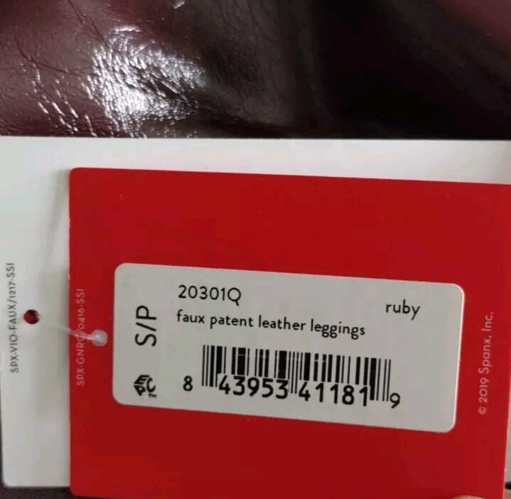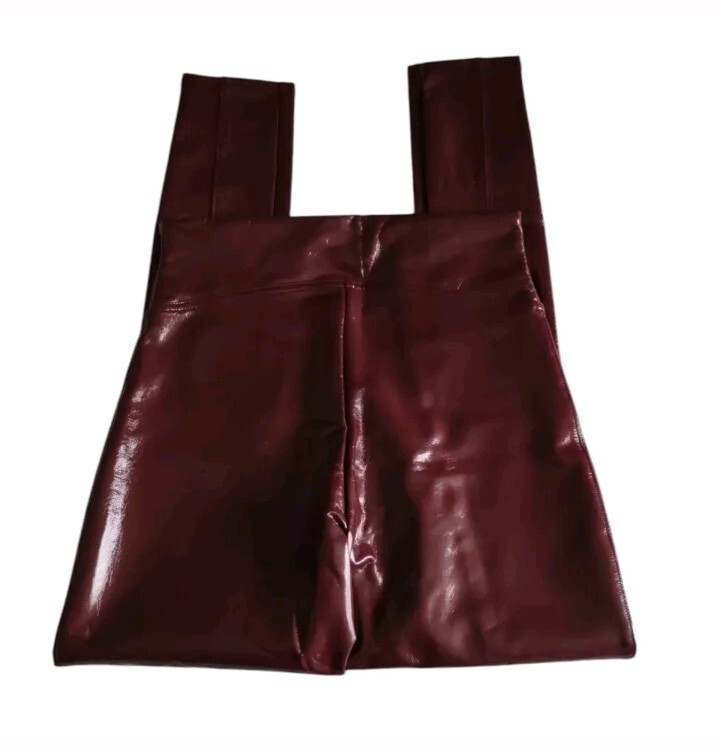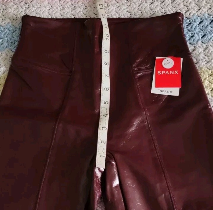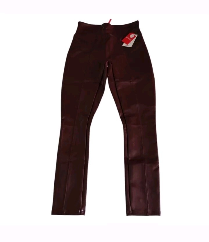 как выглядит NWT Spanx Size Small Petite Ruby Red Faux Patent Leather Leggings фото