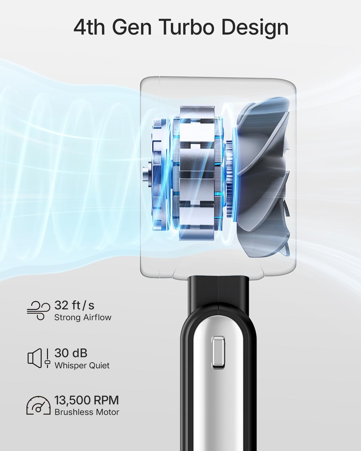 Portable Handheld Turbo Fan - 5 Gear High Speed 4000Mah Rechargeable Mini Person