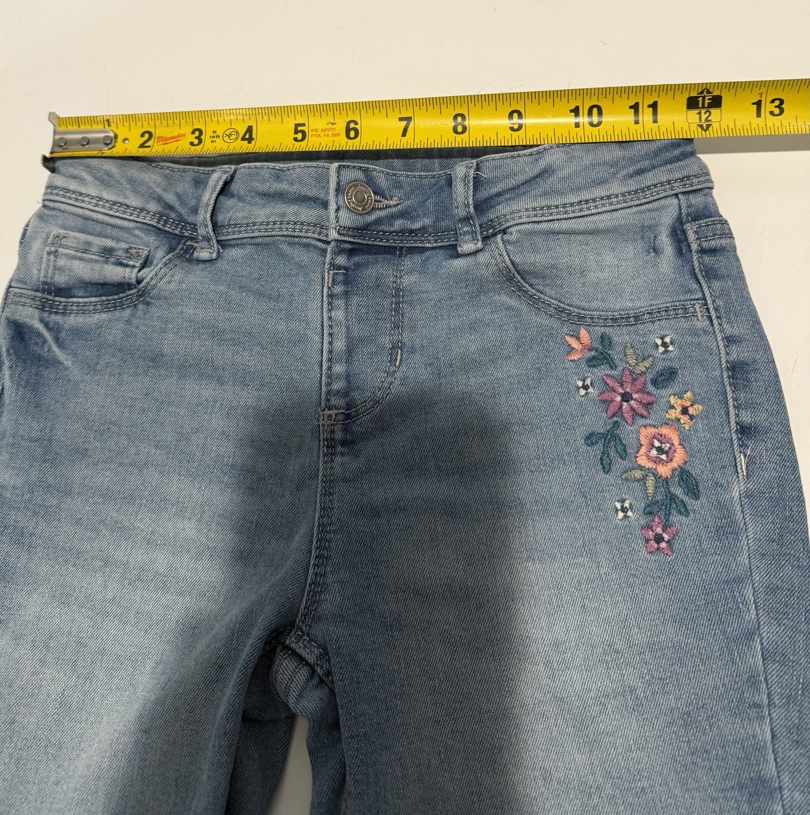Girls Jumping Beans Jeans Size 8 Blue Embroidered Floral Design