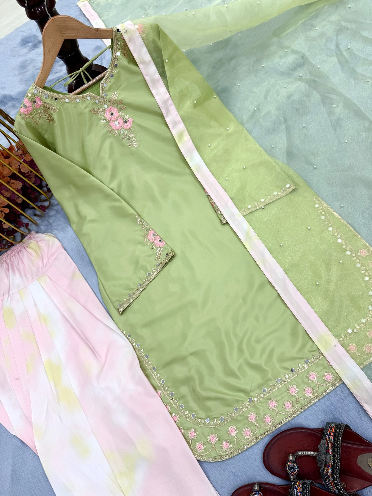 FARSI SALWAR WORK: HEAVY EMBROIDERY WORK WITH DIGITAL PRINT WITH ELASTIC