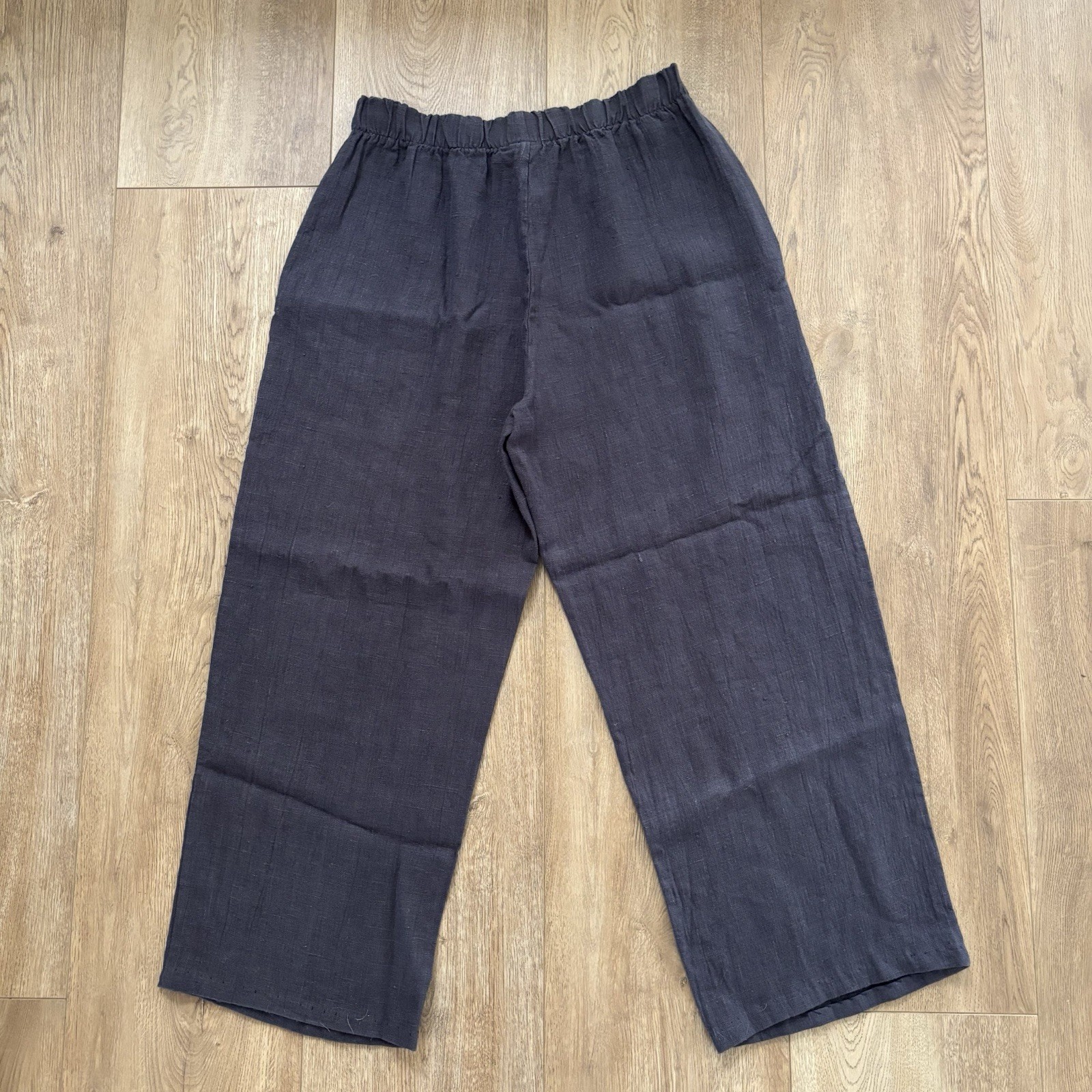 Bryn Walker 100 Linen Wide Leg Lagenlook Full Length Pants Size M Charcoal Gray