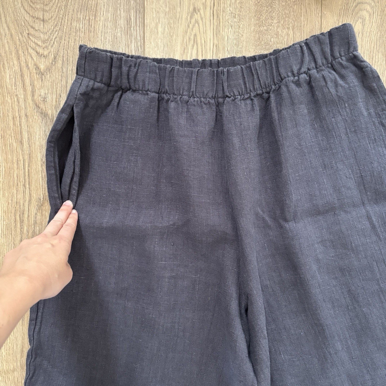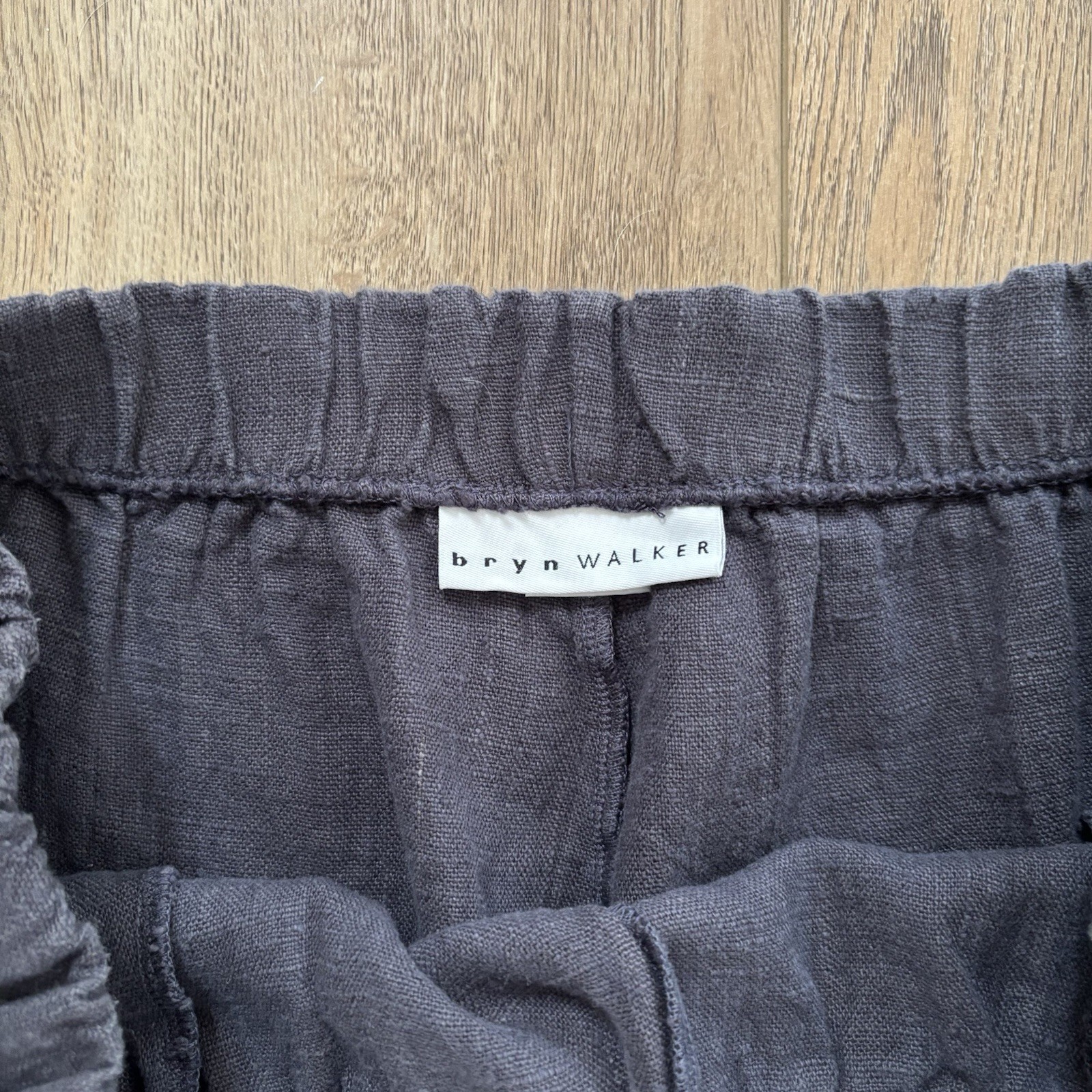 как выглядит Bryn Walker 100 Linen Wide Leg Lagenlook Full Length Pants Size M Charcoal Gray фото
