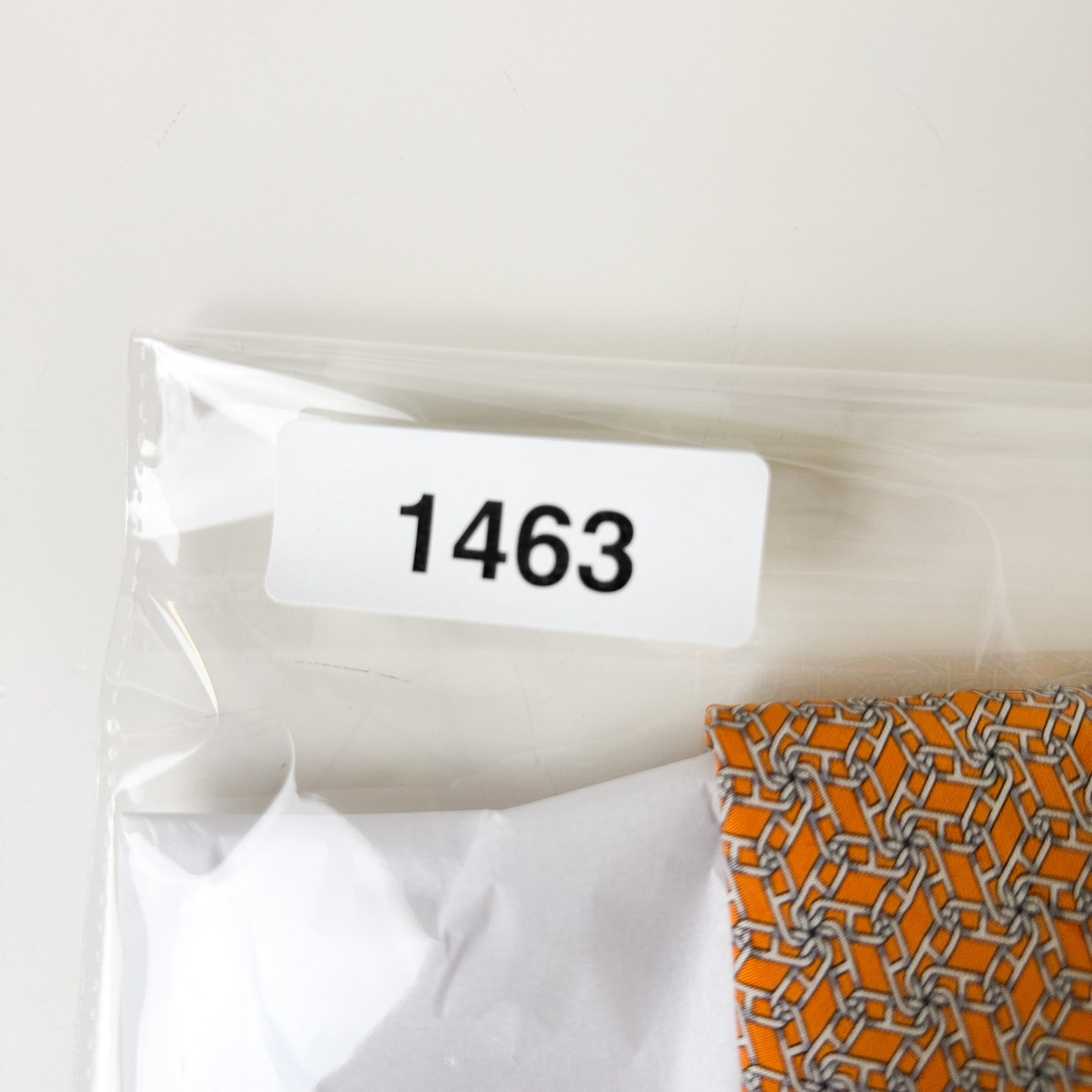 как выглядит Hermes Silk Neck Tie Geometric Link Pattern Orange White Gray Long - 3.75 x 61 фото