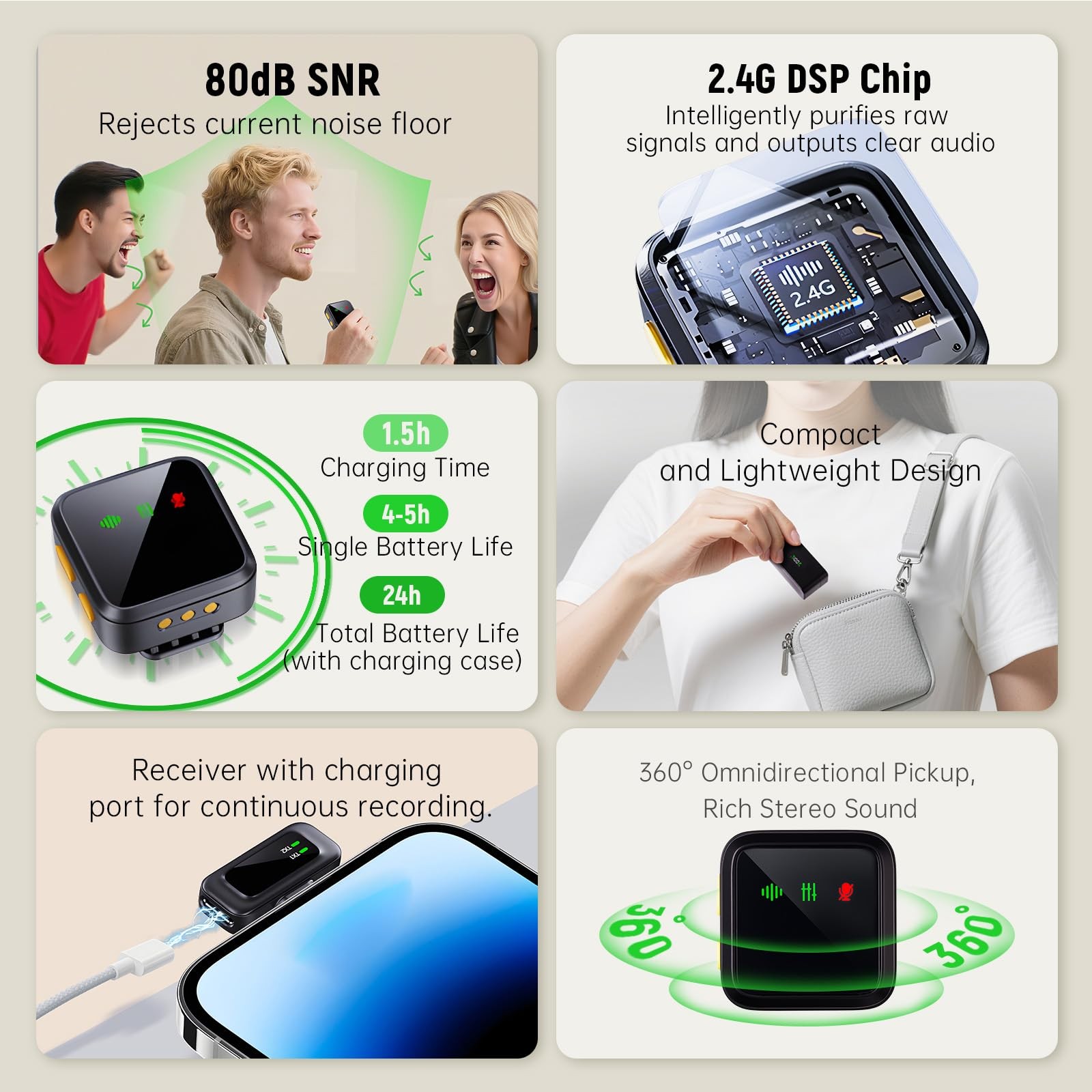 Wireless Lavalier Microphone T40 for iPhone/Android with Intelligent Noise Ca...