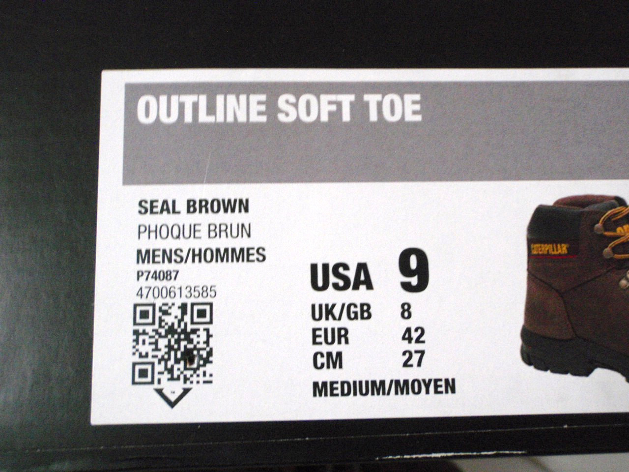 Caterpillar Outline Soft Toe Work Boot Men s Size 9 Seal Brown Black P74087 Box