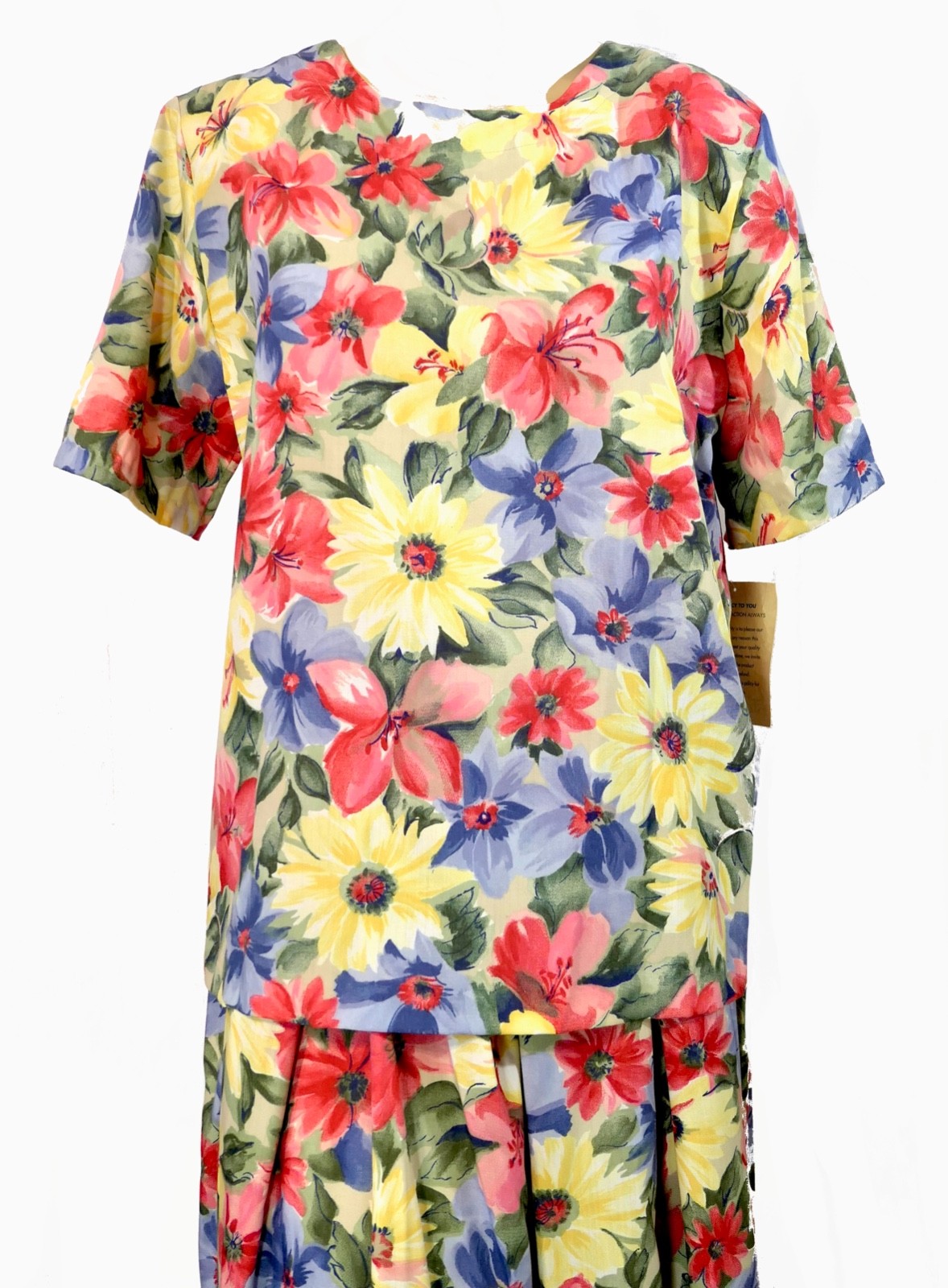 Vintage NWT 80s 90s Retro Flower Cristin Stevens Mom Skirt Top Set Midi M 10