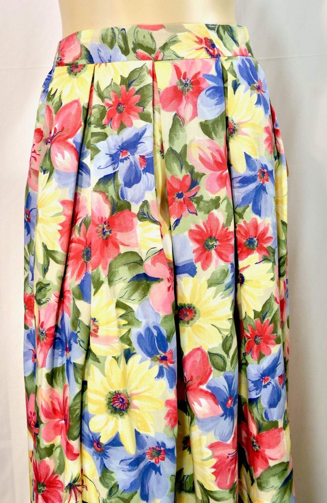 как выглядит Vintage NWT 80s 90s Retro Flower Cristin Stevens Mom Skirt Top Set Midi M 10 фото