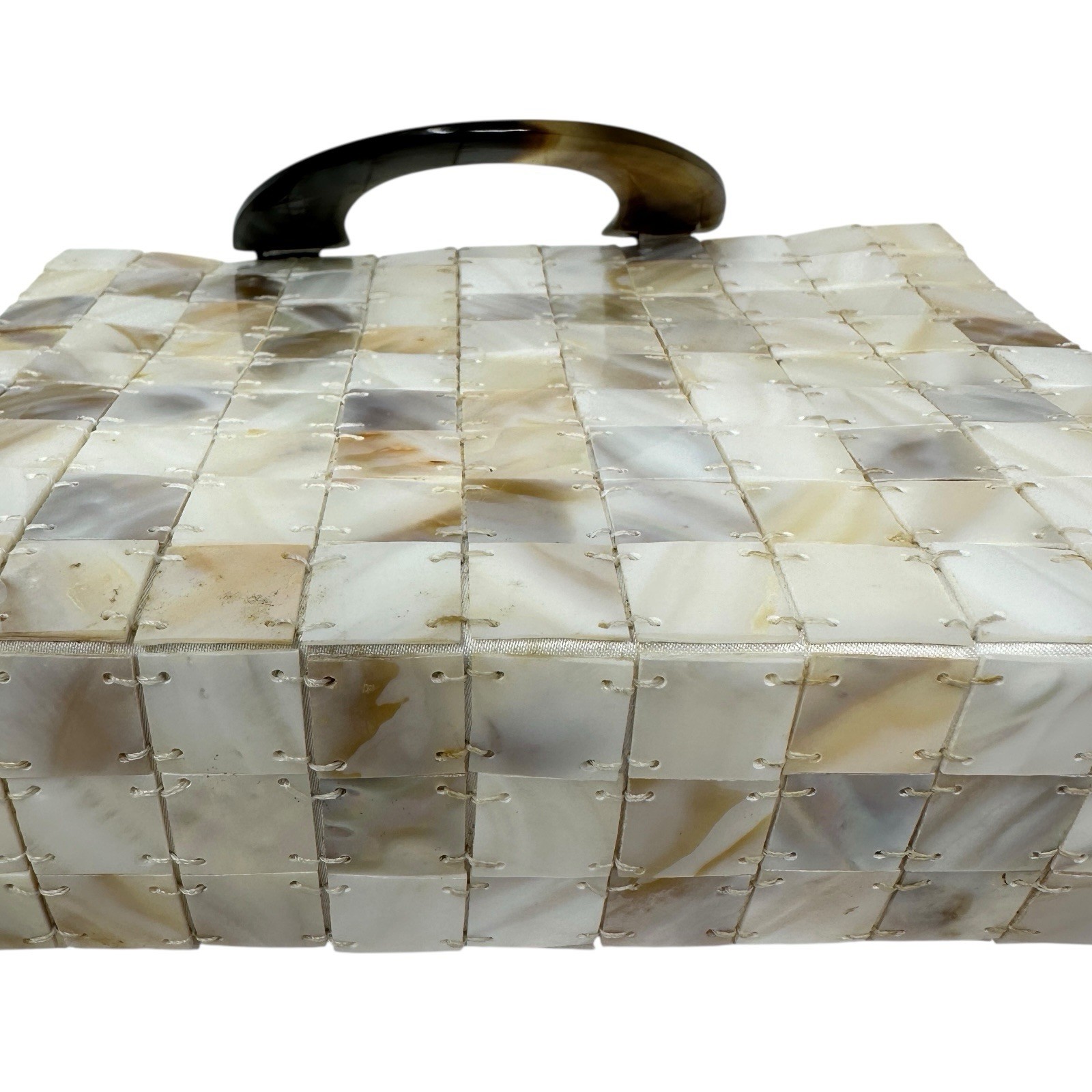 Vintage Mother of Pearl Handbag Purse Clutch Natural Horn Handles Tortoise Shell