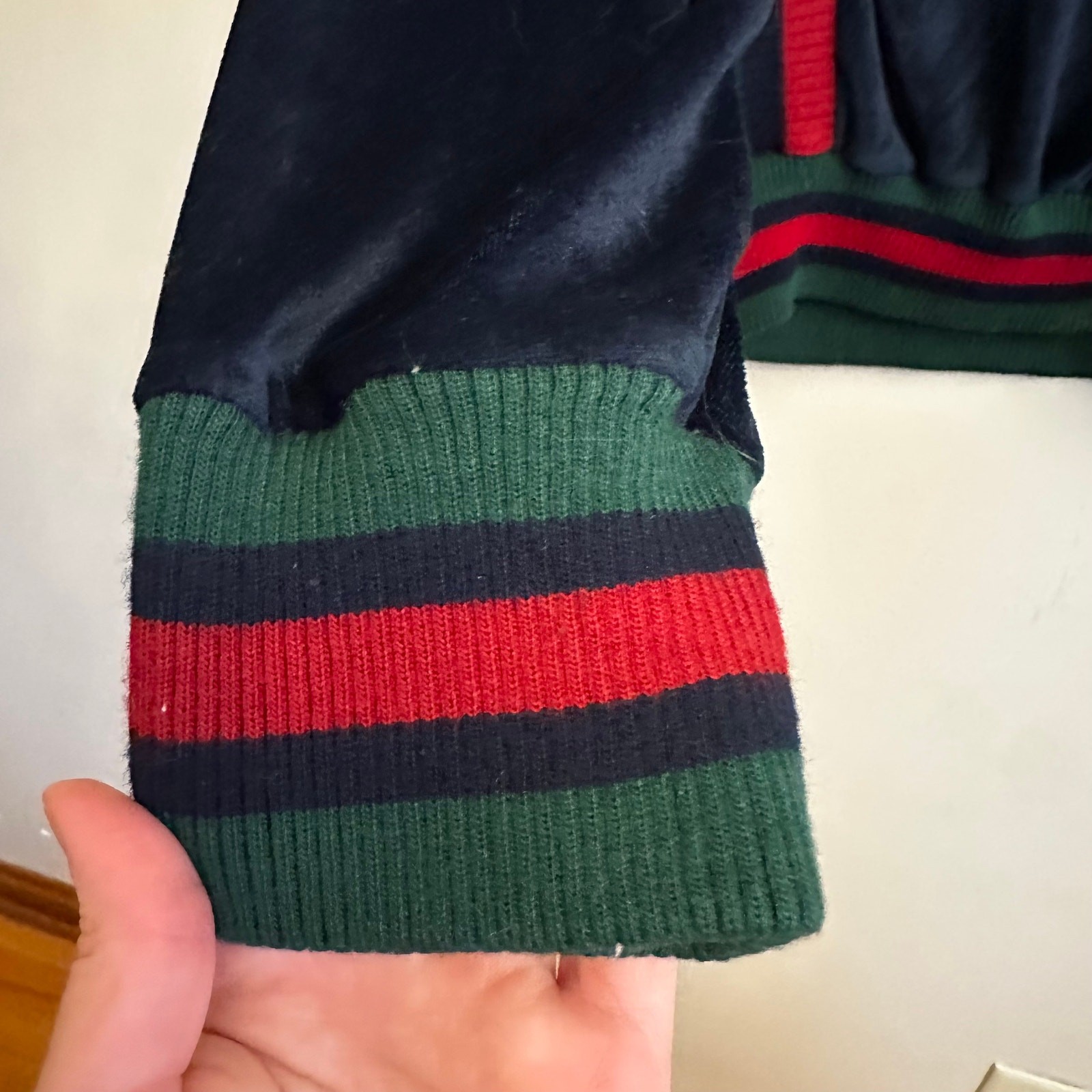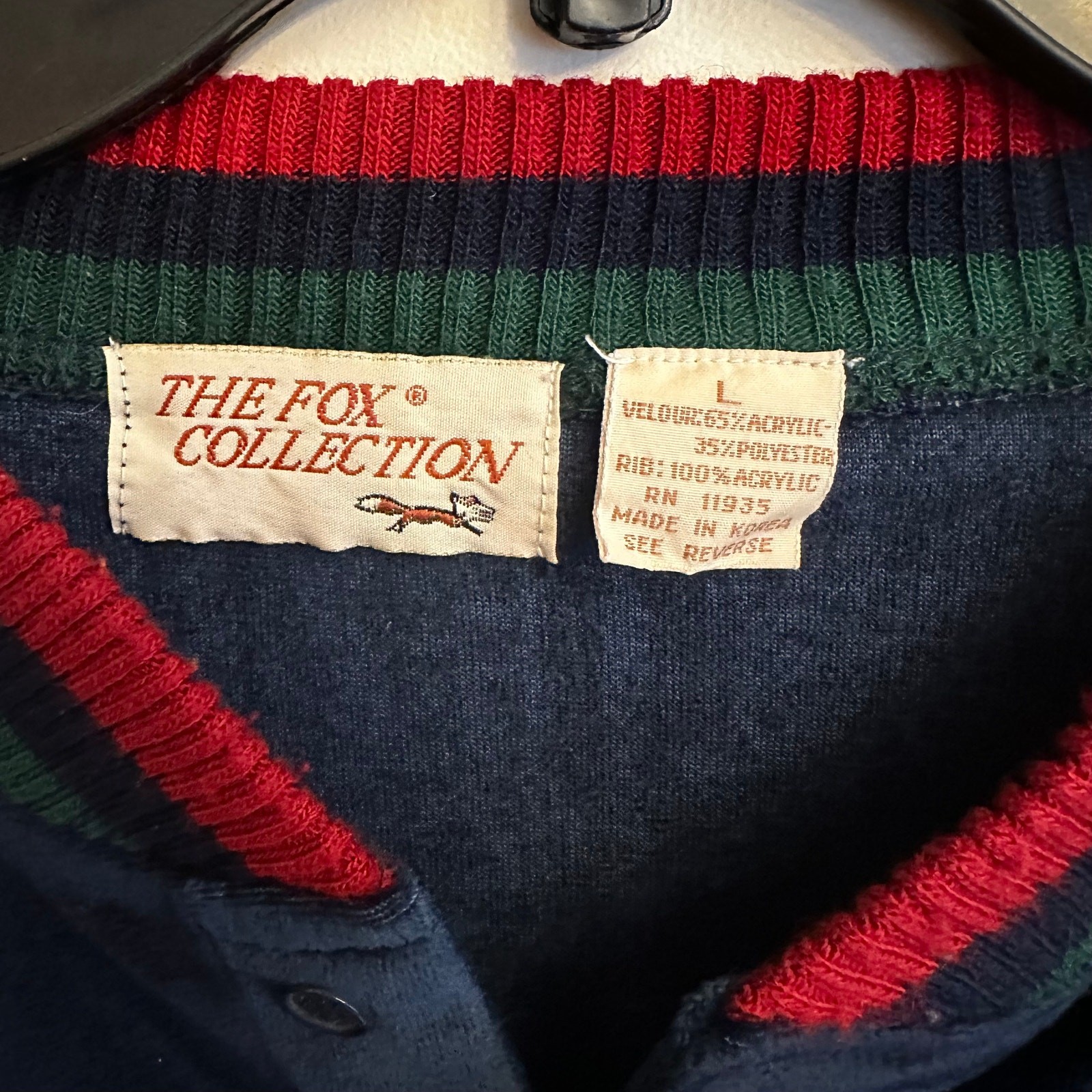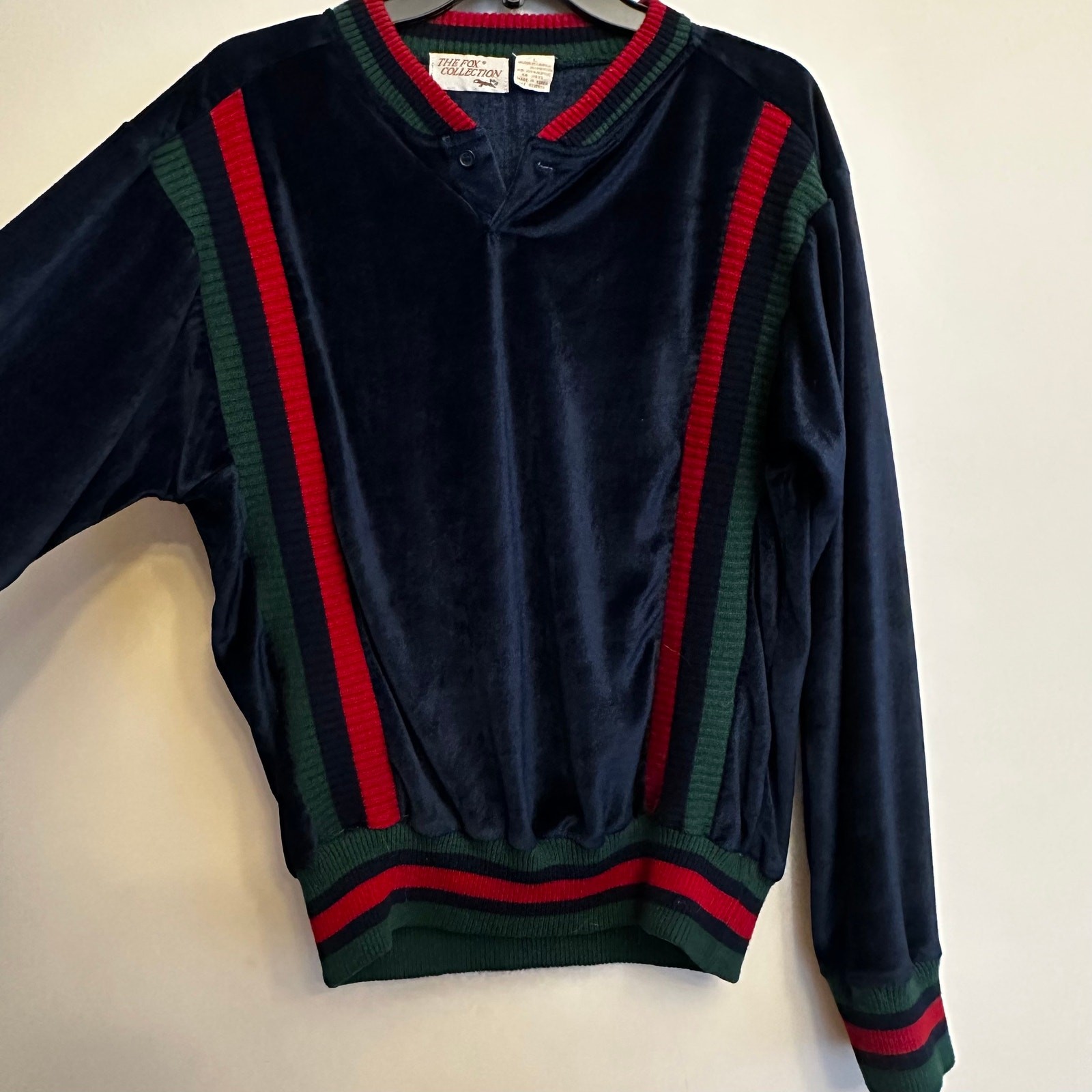 как выглядит Vintage The Fox Collection Velour Tracksuit Set Navy Red Green Stripe Large фото