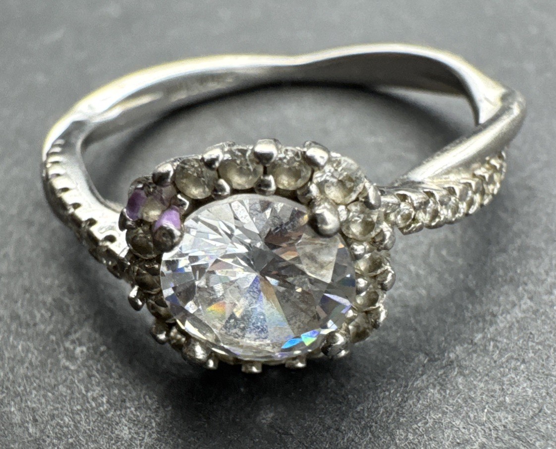VTG CZ Sterling Silver 925 Ring Size 9 Engagement Stunning Solitaire w Accents