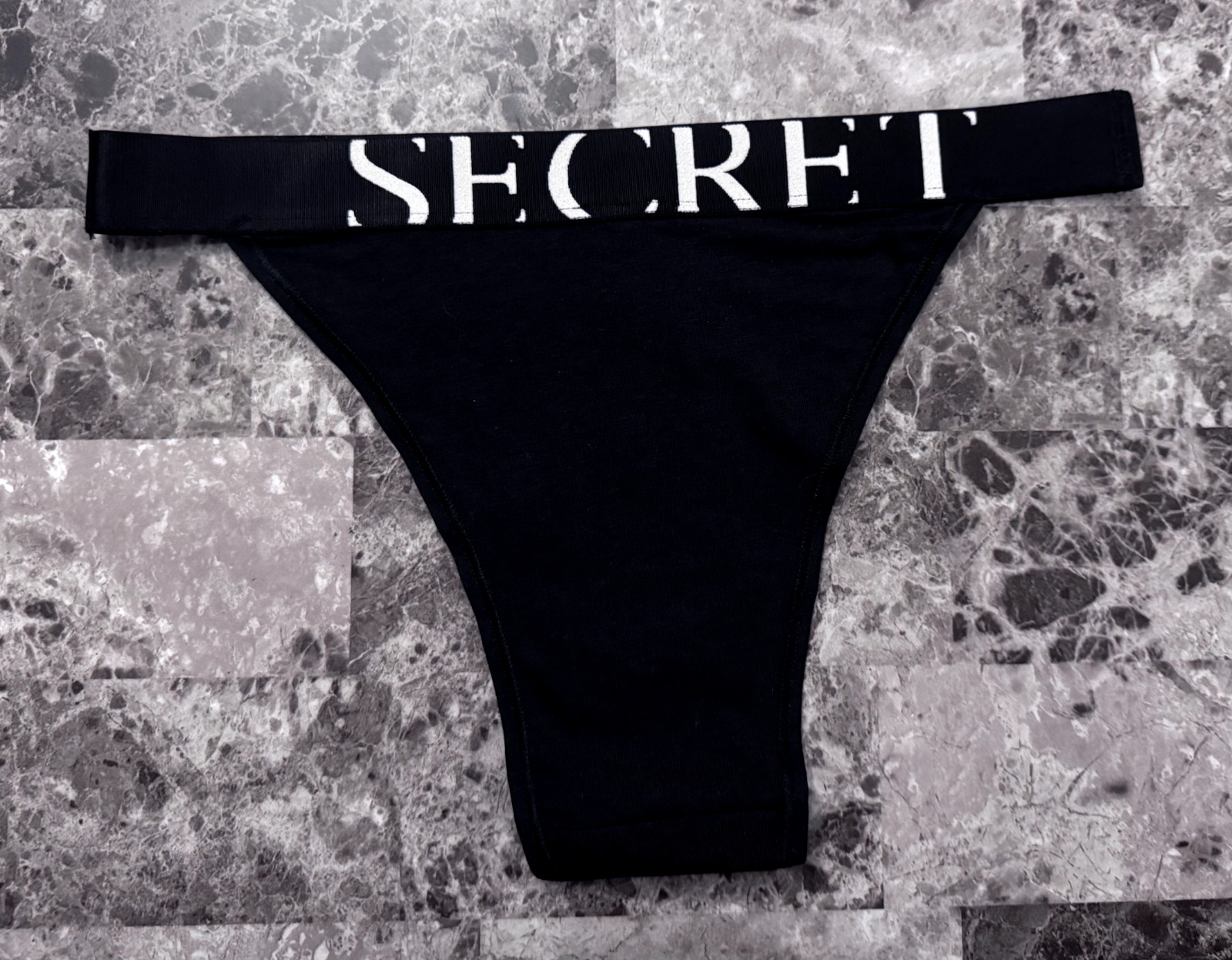 NWT VICTORIA'S SECRET BLACK THICK LOGO BAND FRENCH CUT HIGH LEG BRIEF PANTIES
