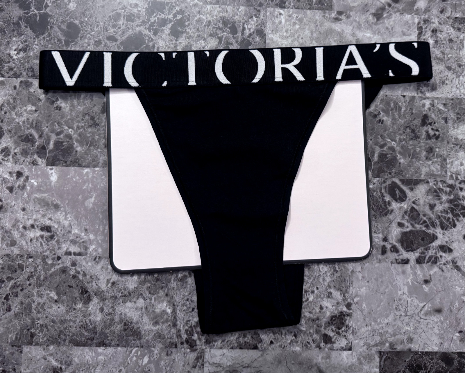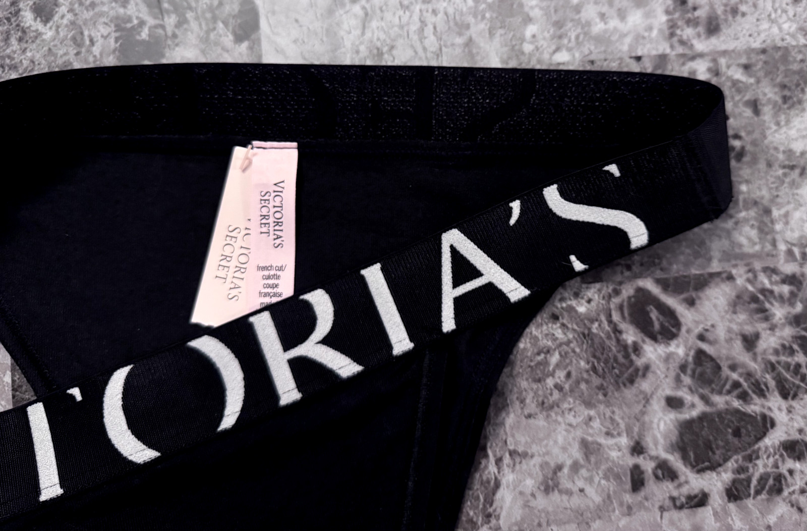 как выглядит NWT VICTORIAS SECRET BLACK THICK LOGO BAND FRENCH CUT HIGH LEG BRIEF PANTIES фото