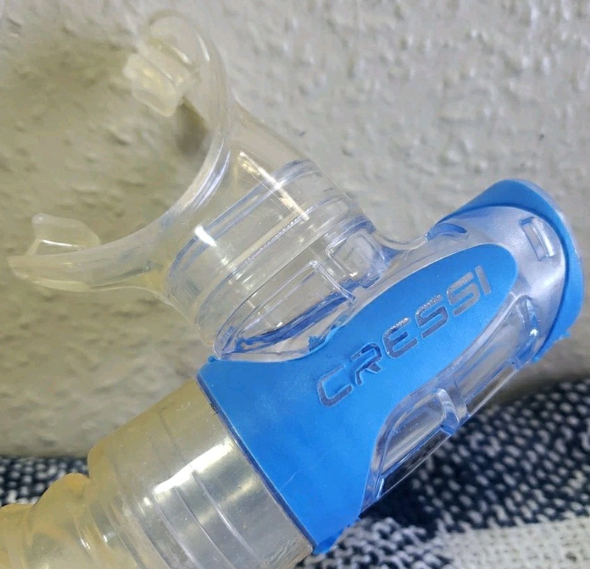как выглядит Cressi Sigma Dry Adult Size Snorkel Blue And Silver EUC фото