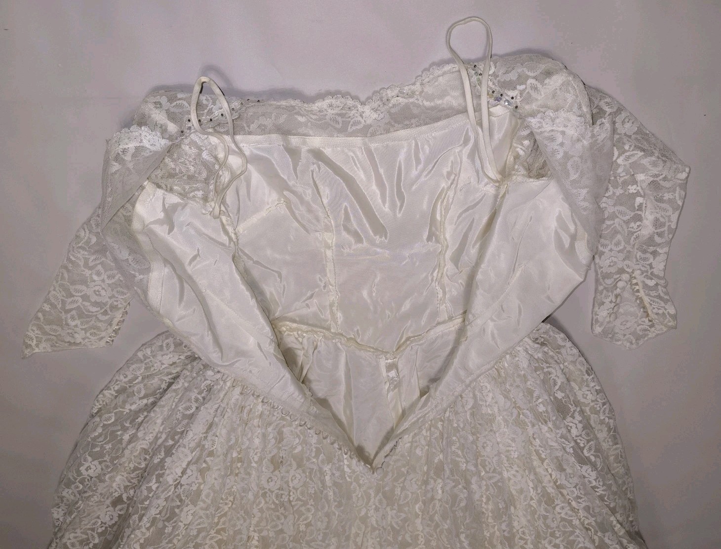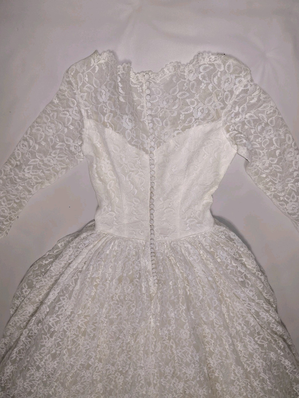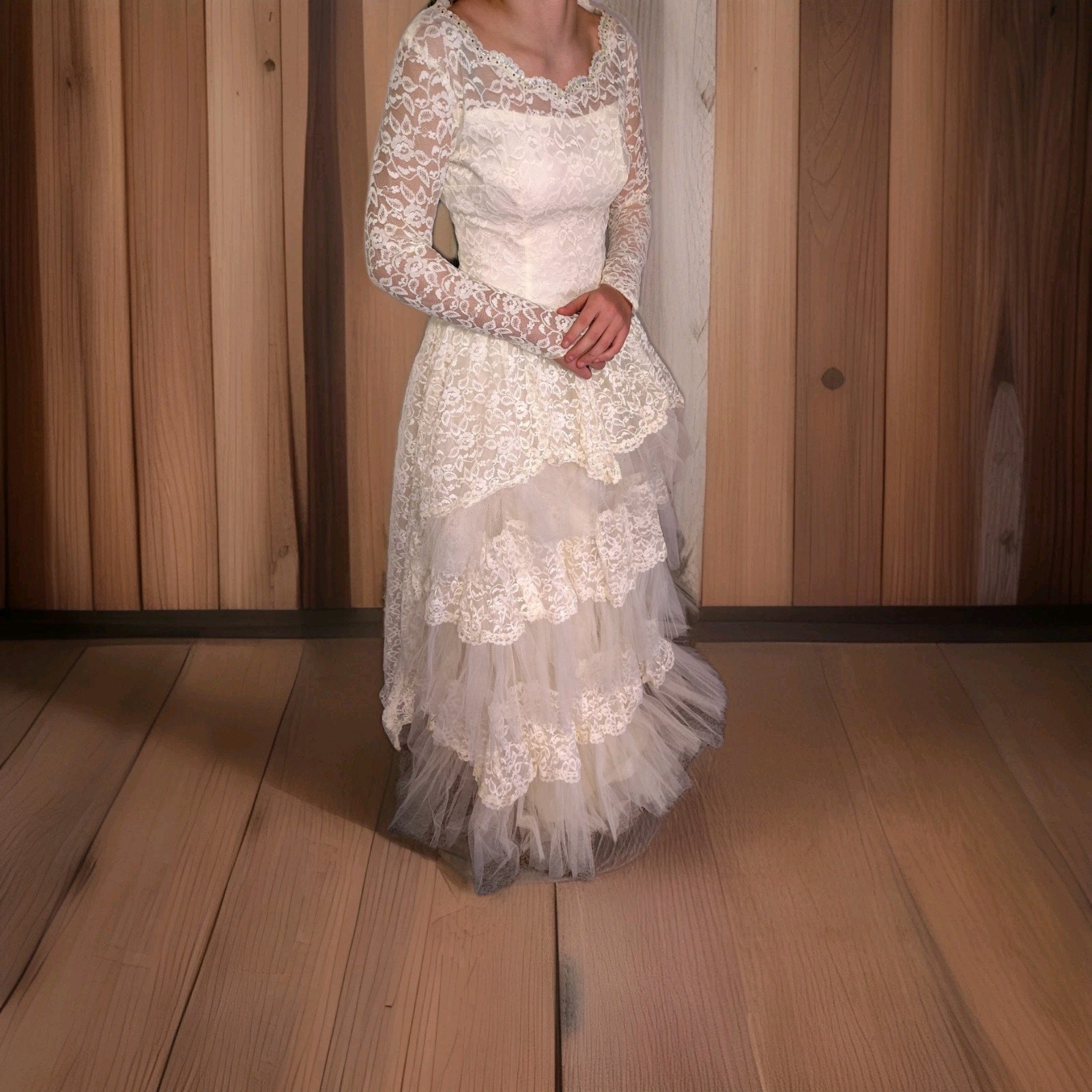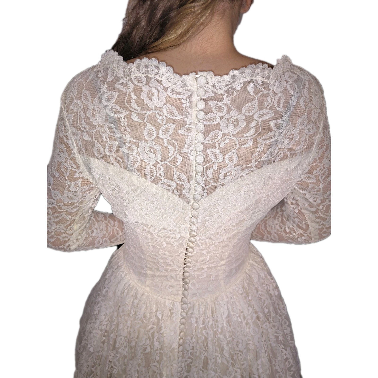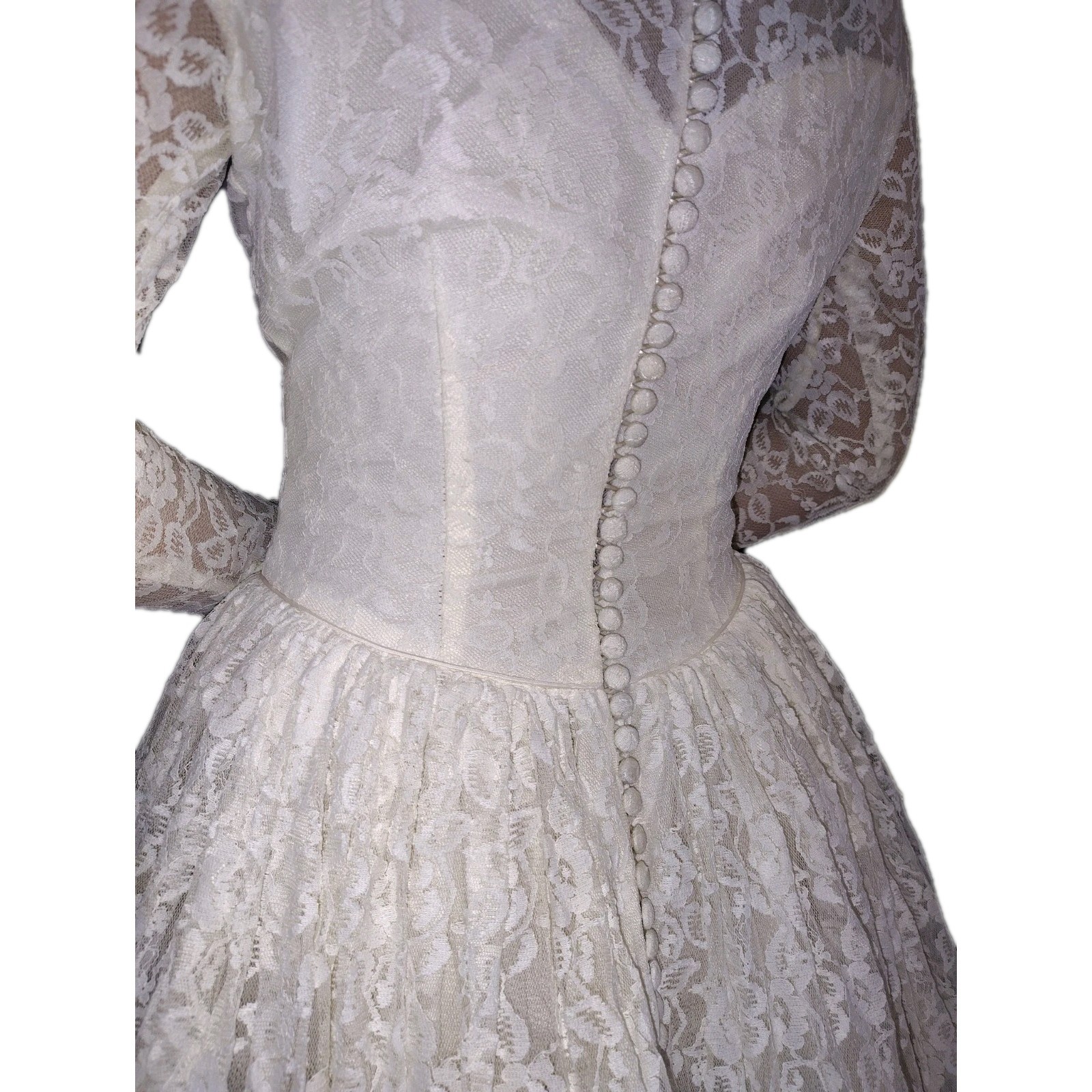 как выглядит 1950 s Vtg Lace Tiered Wedding Gown Cupcake Tulle Wedding Dress  Sz 12 фото