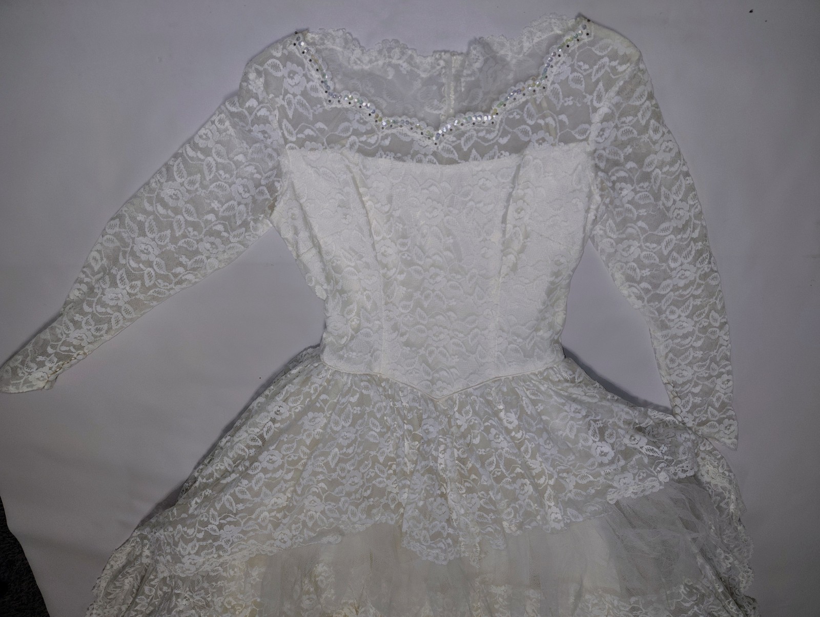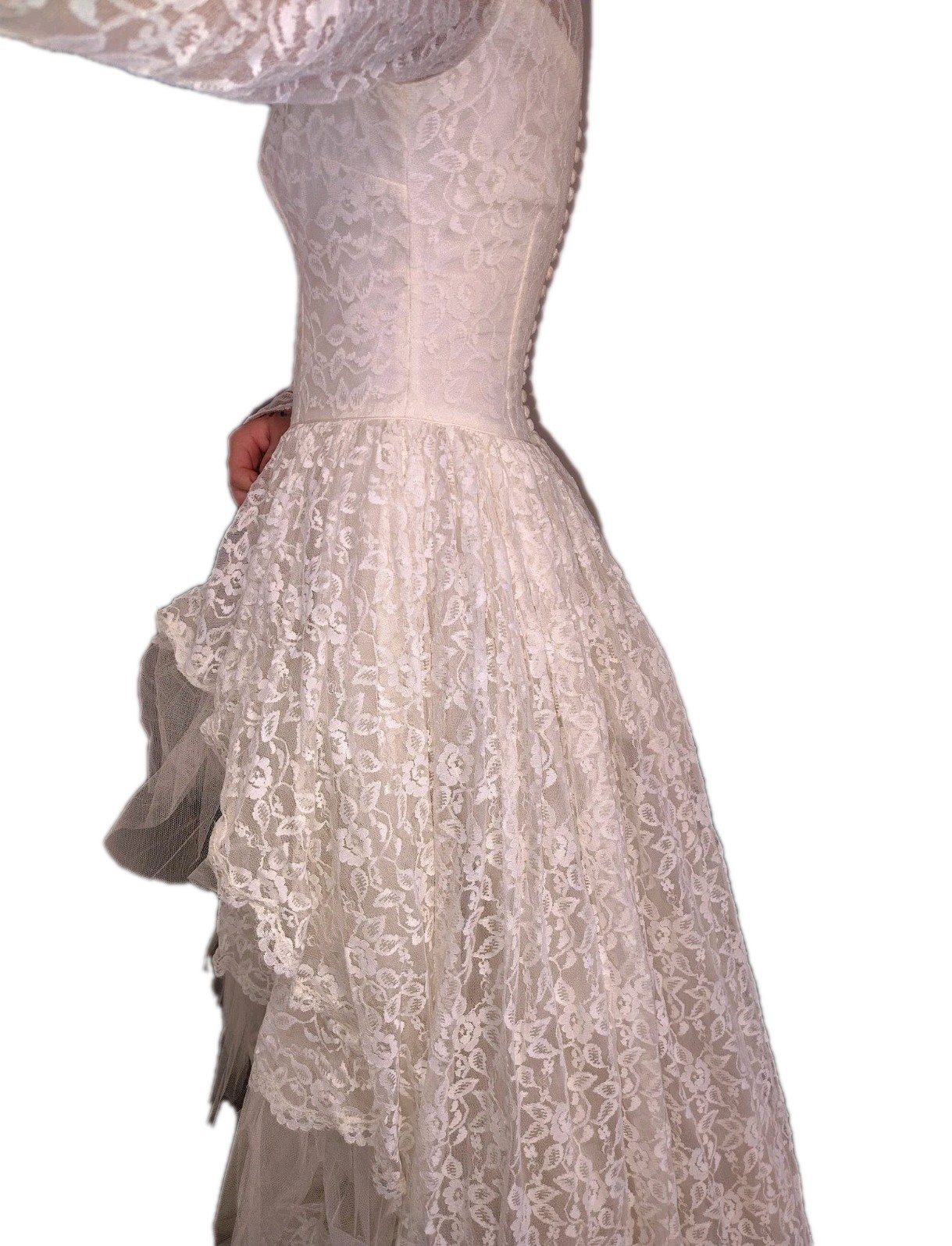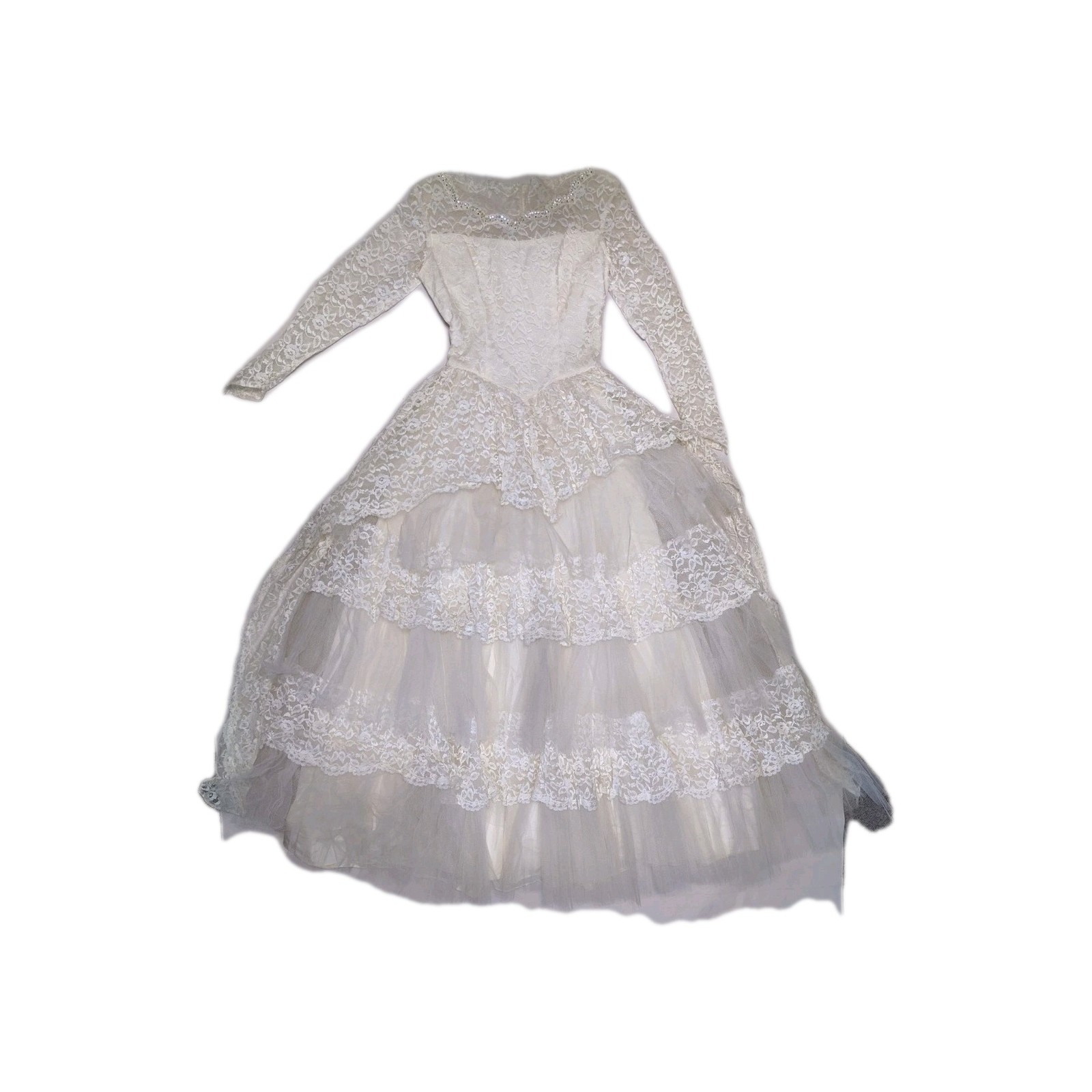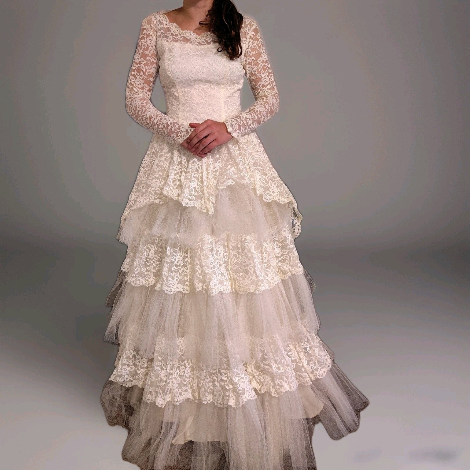 1950 s Vtg Lace Tiered Wedding Gown Cupcake Tulle Wedding Dress Sz 12