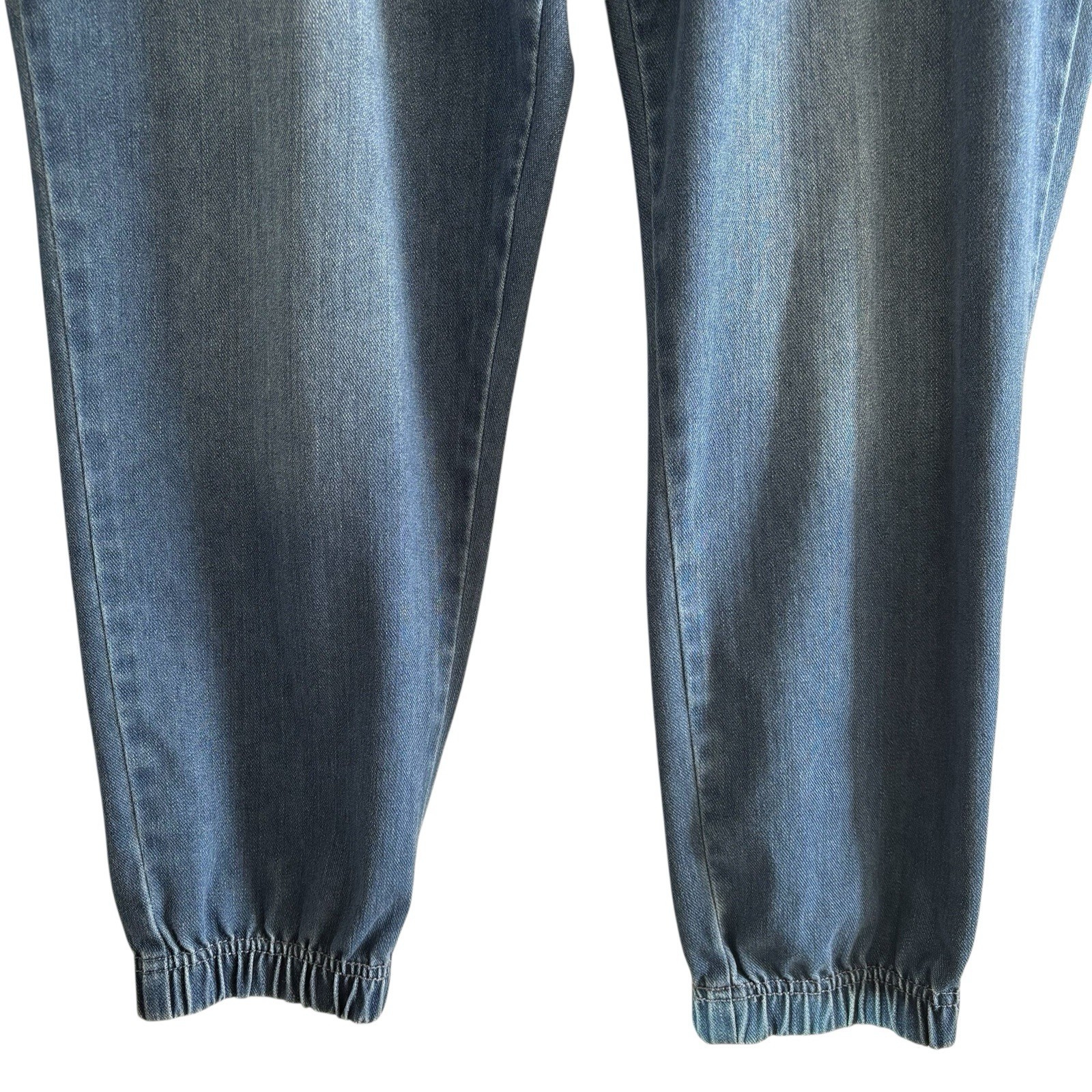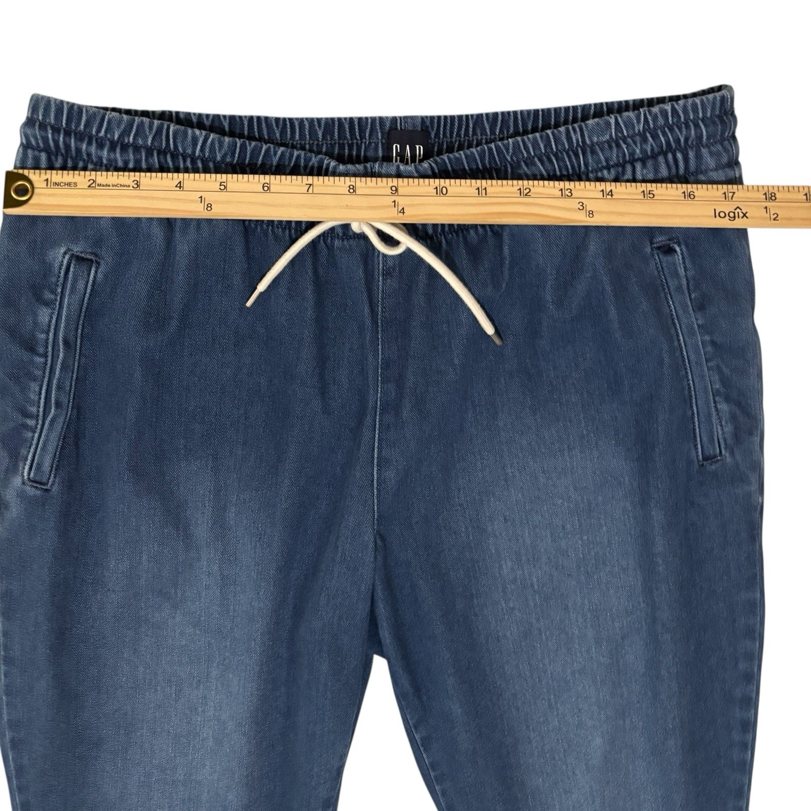 GAP Denim Joggers Large High Rise Medium Wash Elastic Drawstring Waist Casual