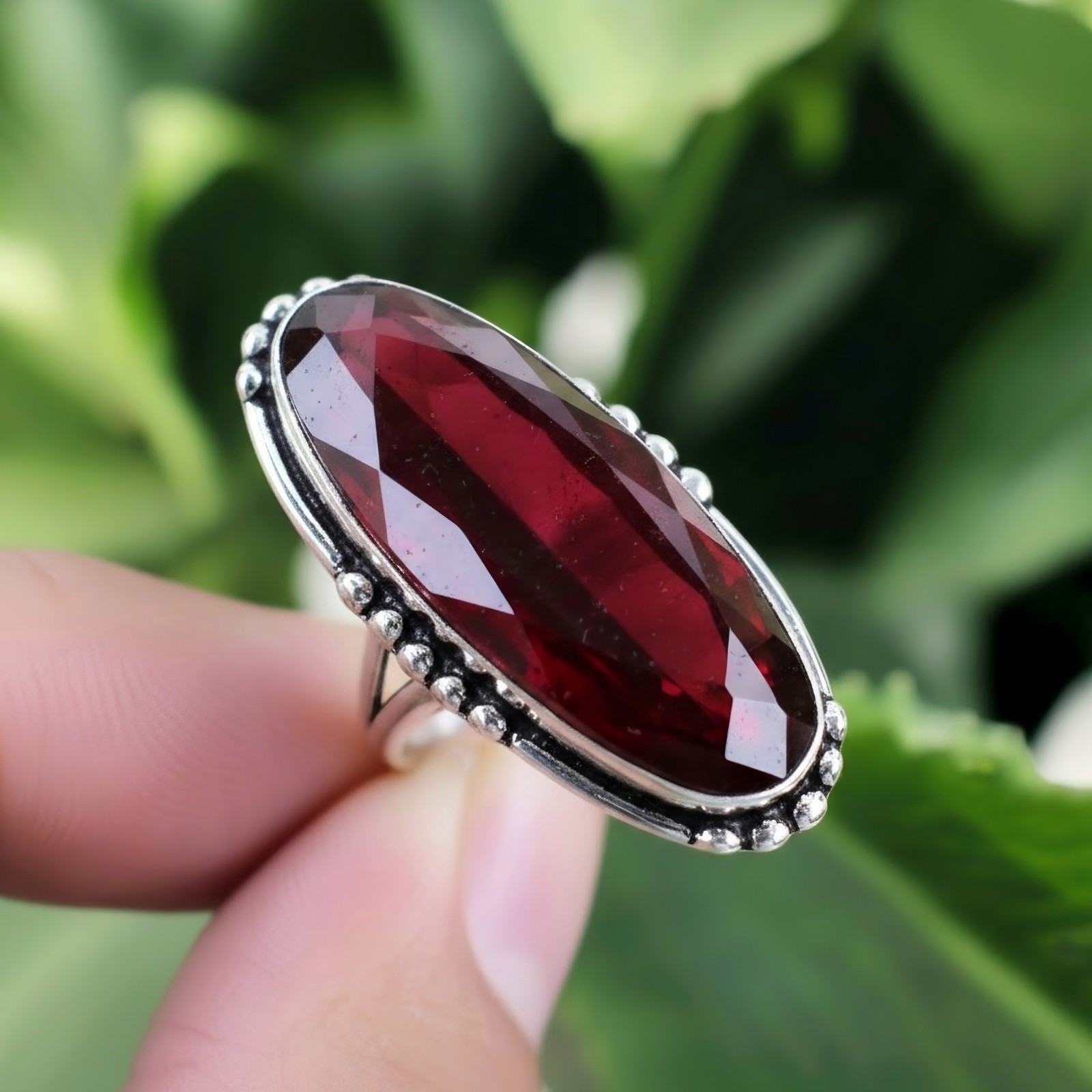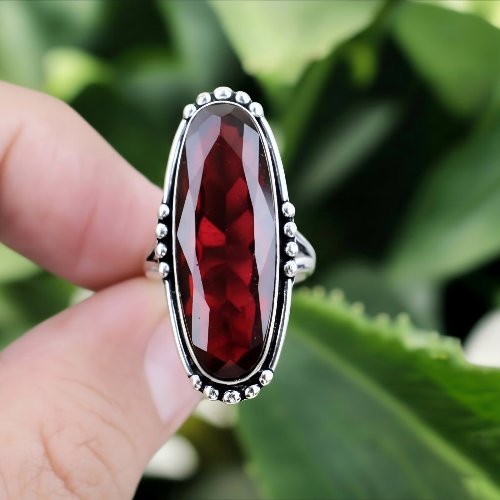 как выглядит Garnet Silver Ring 925 Sterling Silver Ring Handmade Gemstone Ring Women