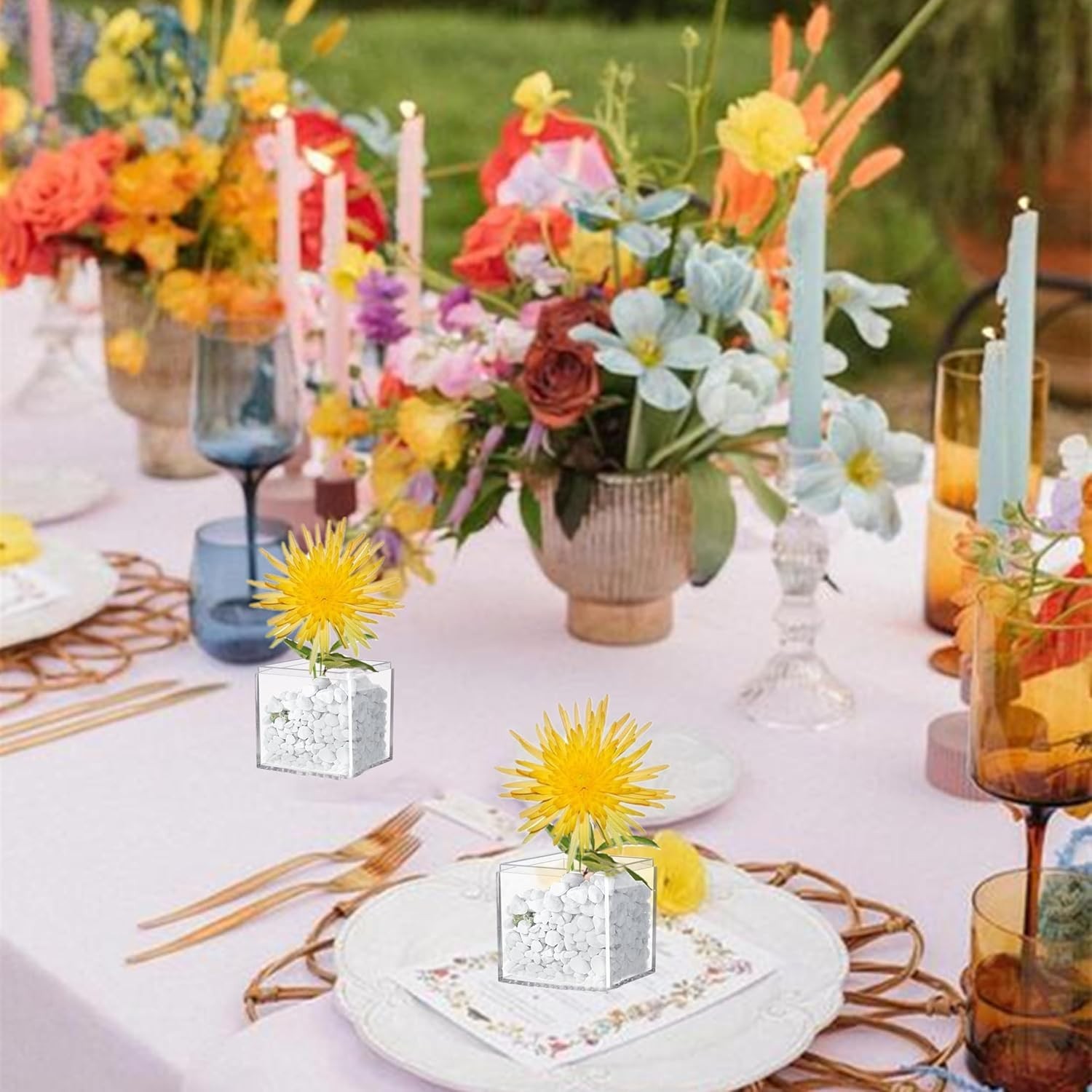 Small Acrylic Box Clear Square Cube 2 Packs Plastic Display Boxes with Lid Je...
