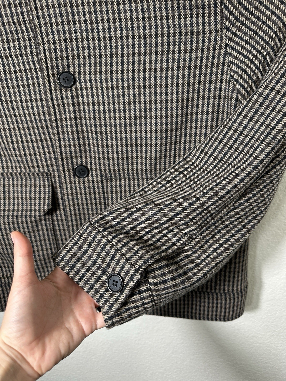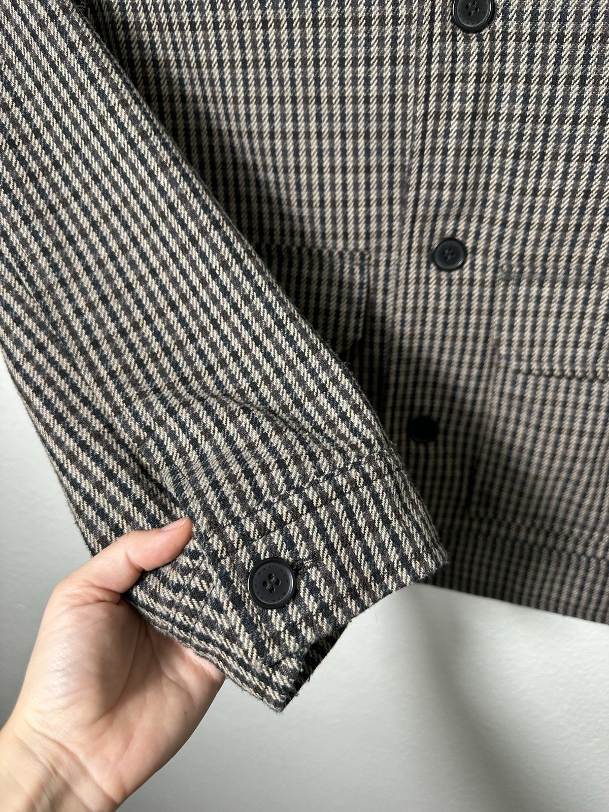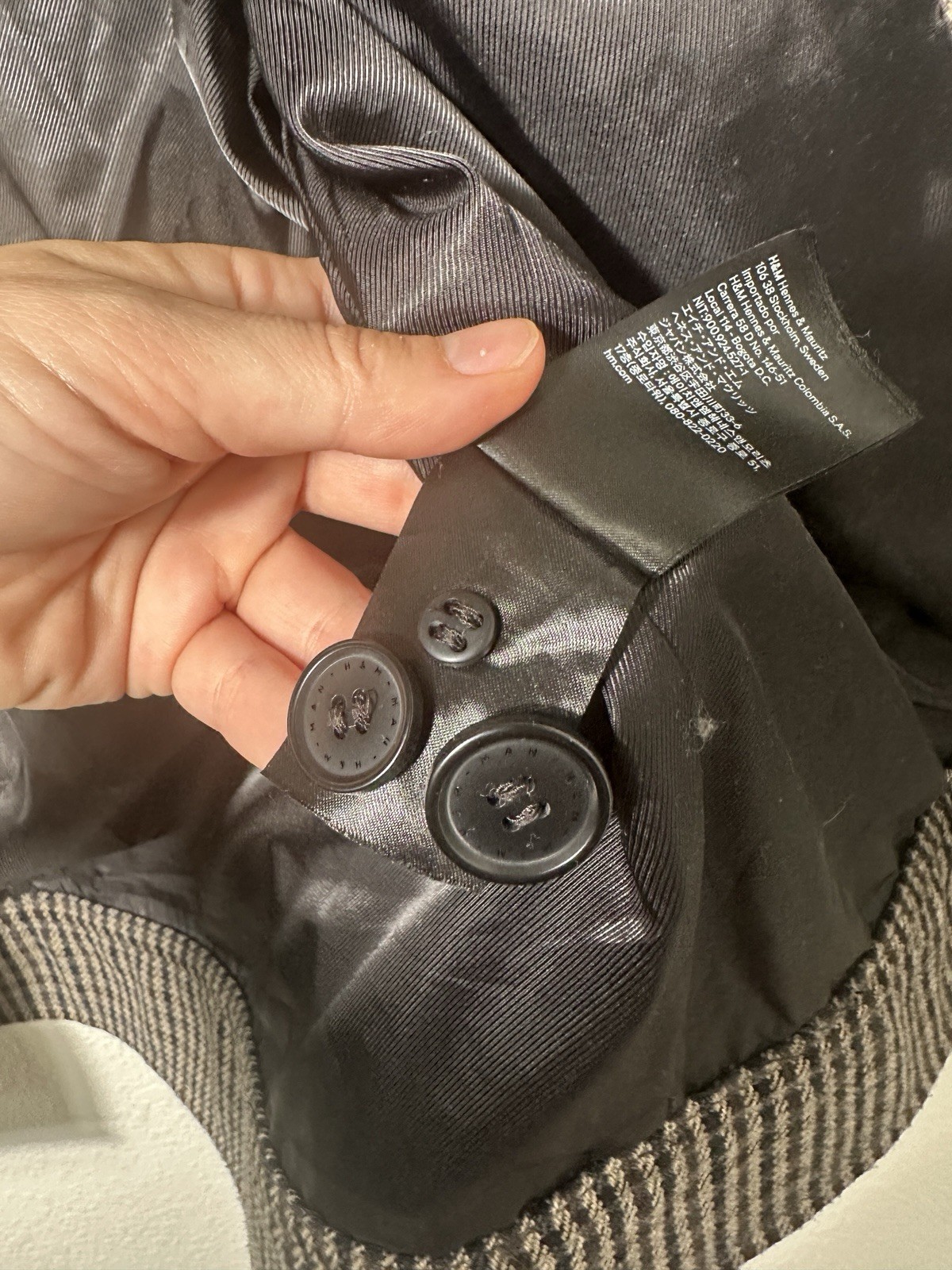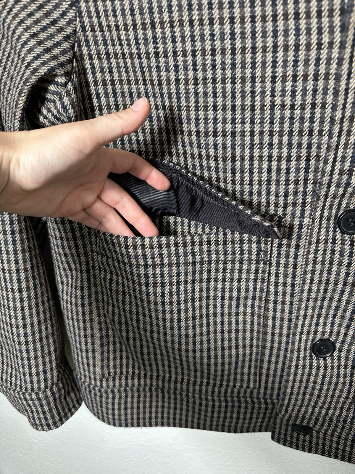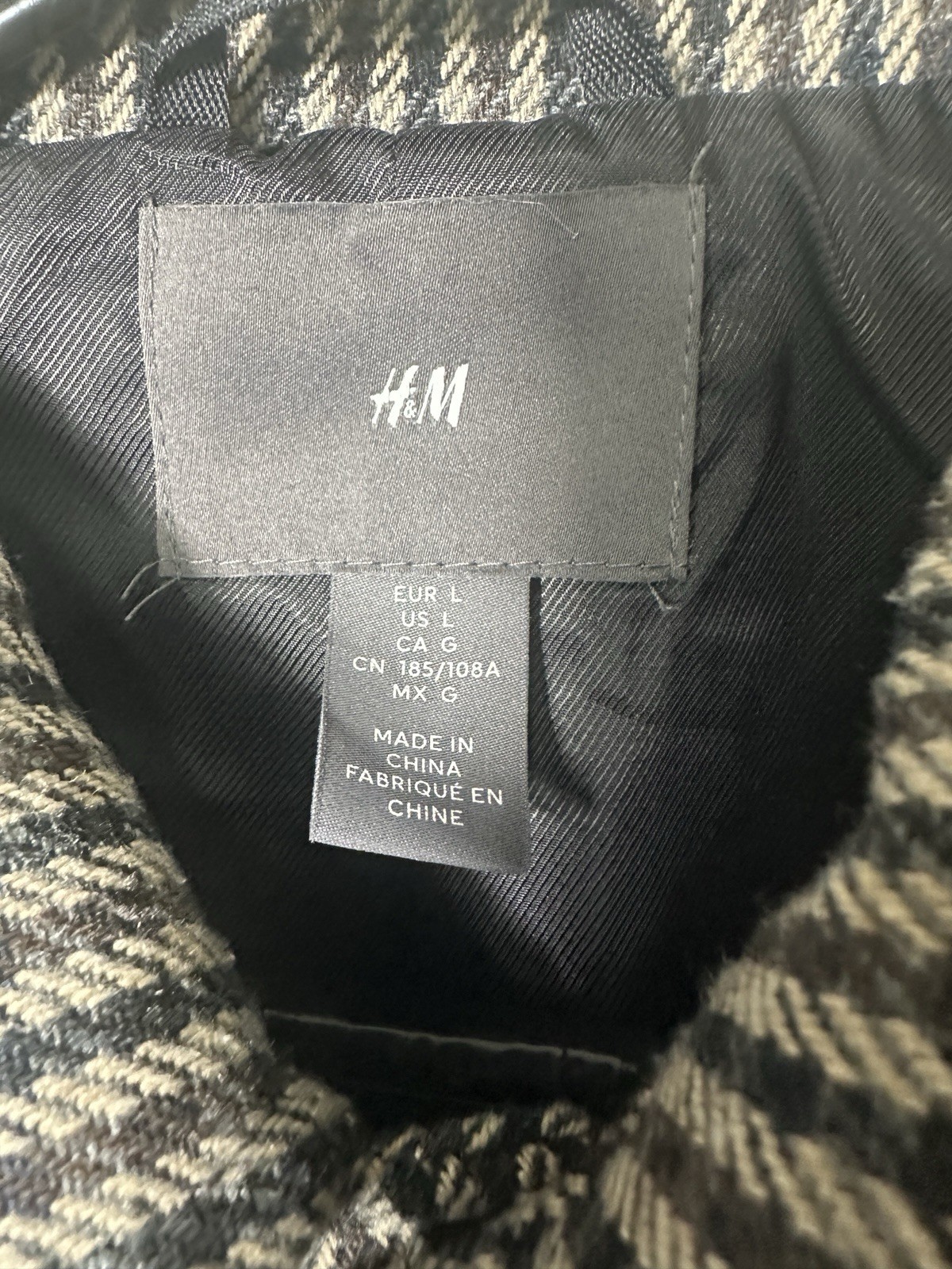 H M Men s Wool Blend Houndstooth Tweed Jacket Size L Brown Tan Check Button Fron