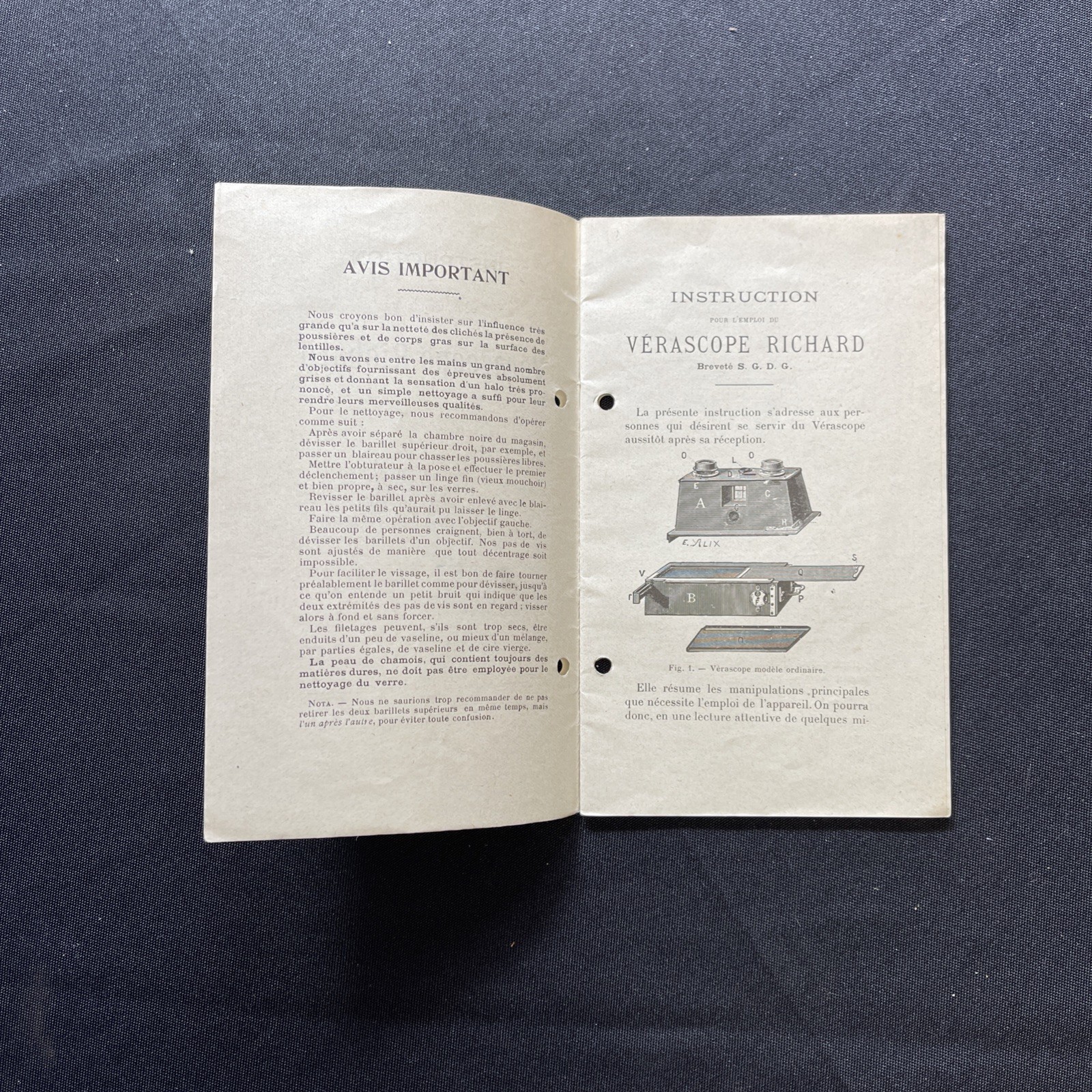 Instruction pour l'emploi du Verascope Jules Richard -Paris 1919 - Stereokamera