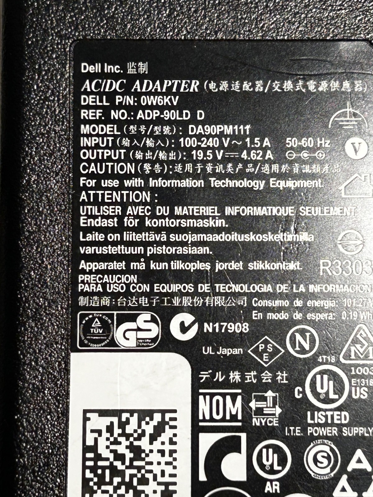 Genuine Dell 90W AC Adapter 19.5V 4.62A DA90PM111 P/N 0W6KV Charger