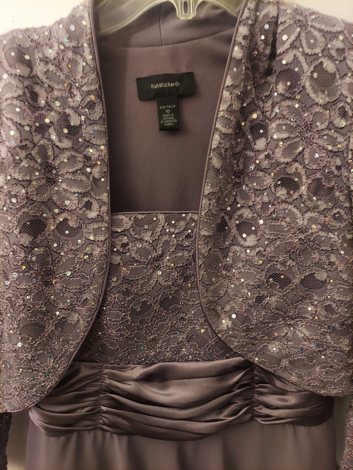 R M Richards Light Purple Lace Ruffled 2 Pc Semi Formal Dress And Jacket Size 10