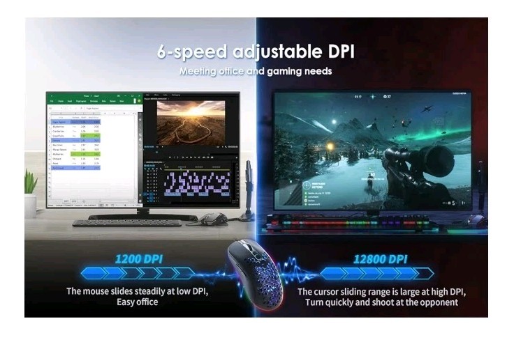 RGB Gaming Mouse Honeycomb Shell 12800 DPI 7 Programmable Buttons PC/Mac