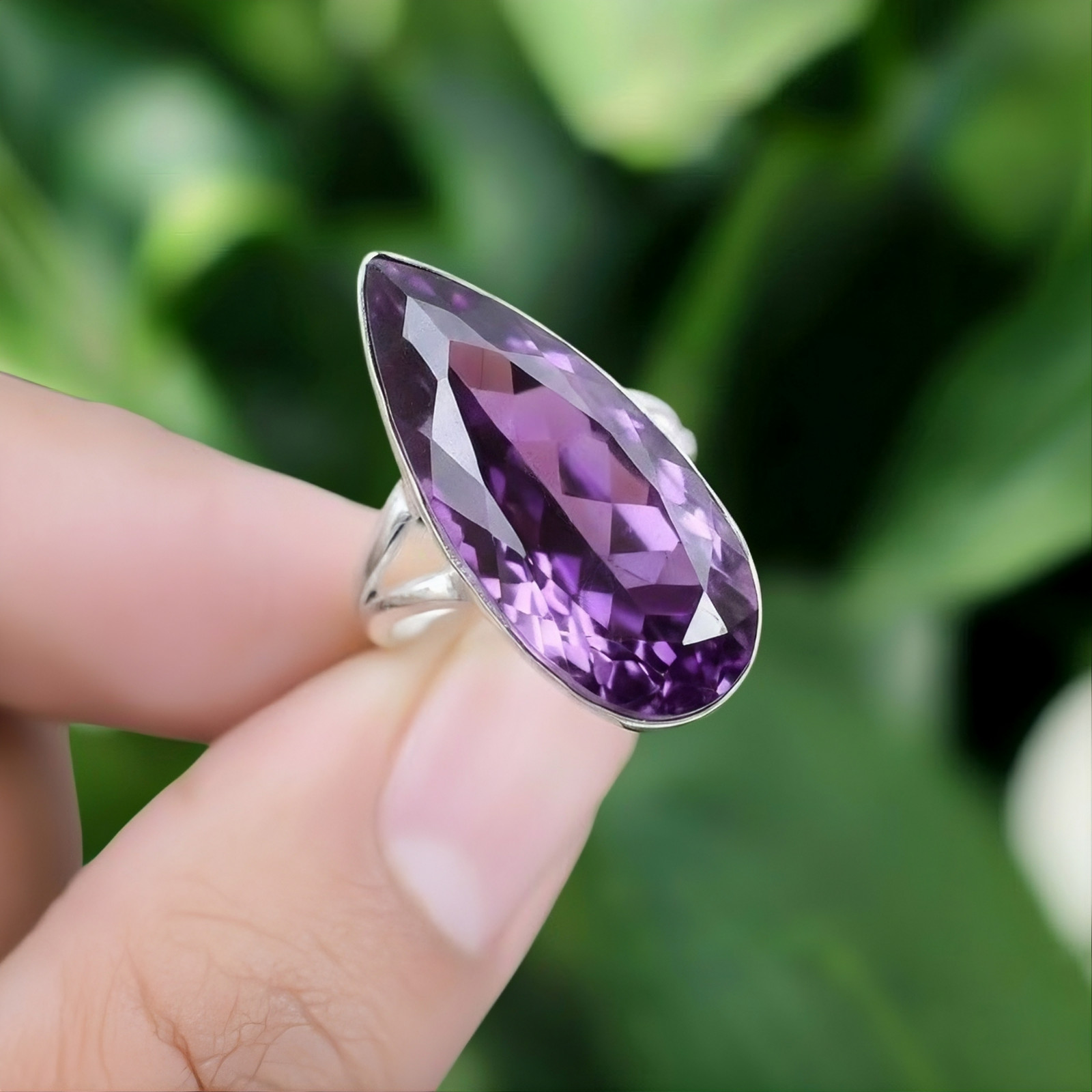 как выглядит Amethyst Ring 925 Sterling Silver Ring Handmade Gemstone Ring Womens Ring фото