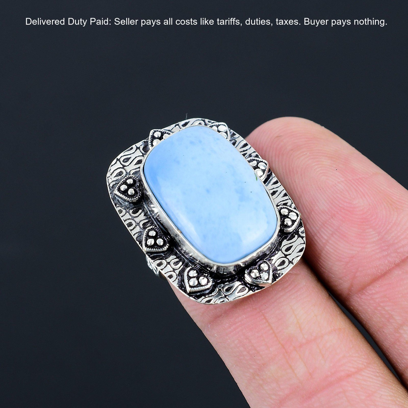 925 Sterling Silver Natural Owyhee Blue Opal New Promise Statement Ring Size 6