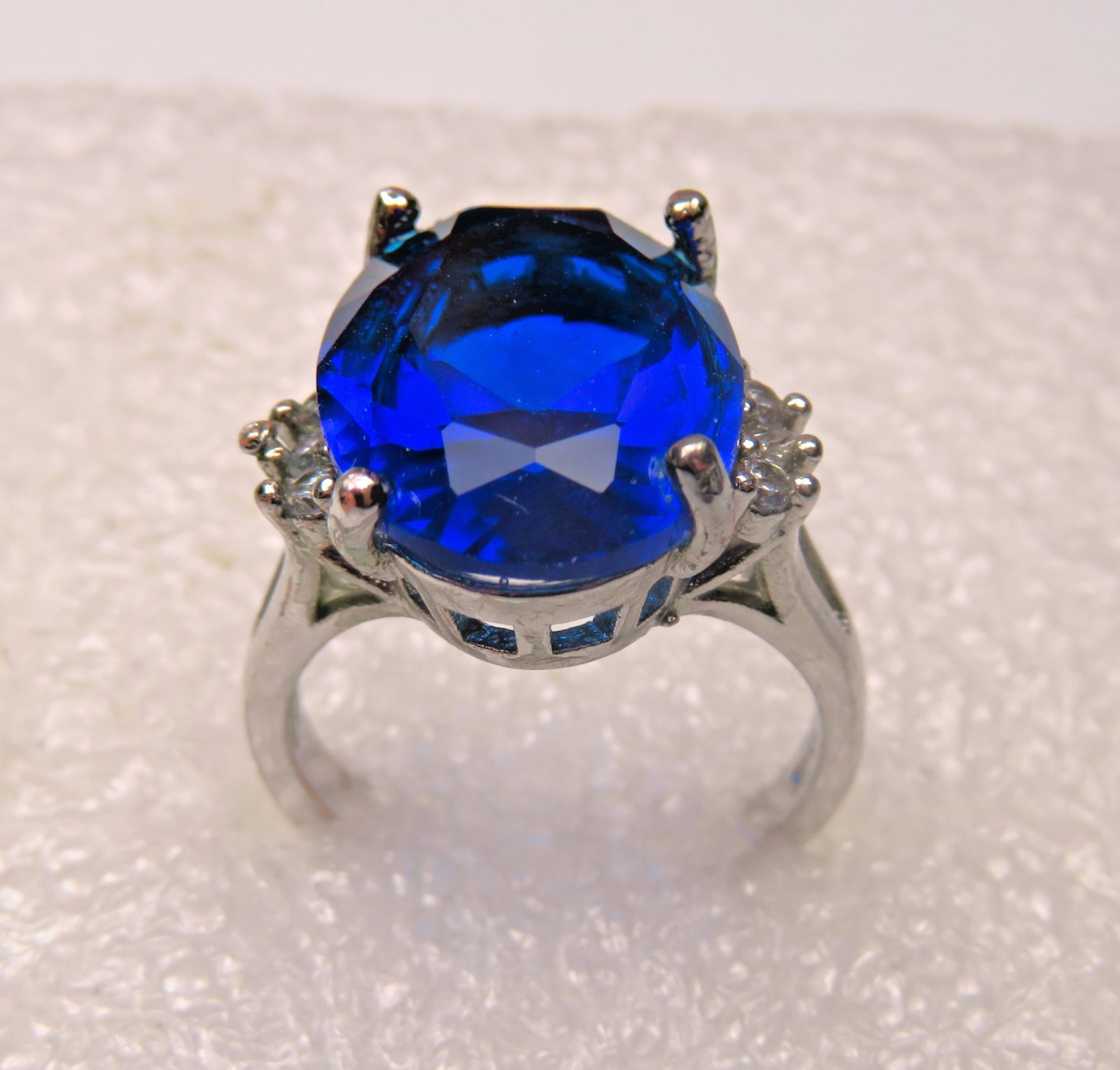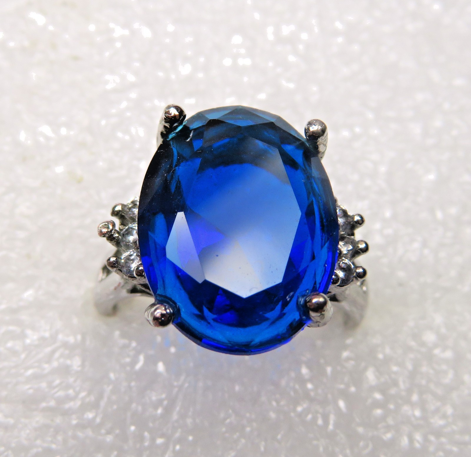 Sterling Silver Lab Created Sapphire Large Gemstone Ring, Size 6
