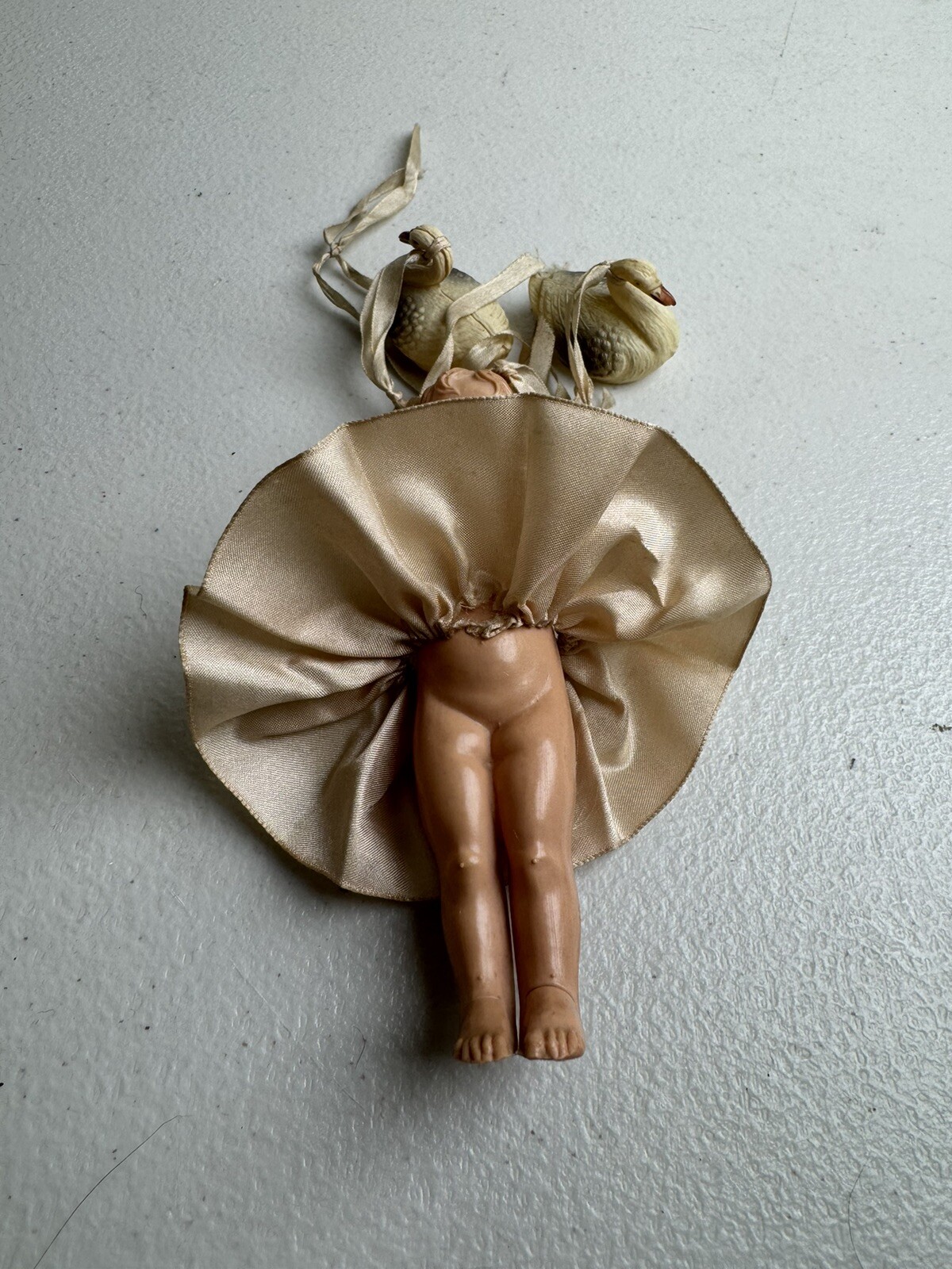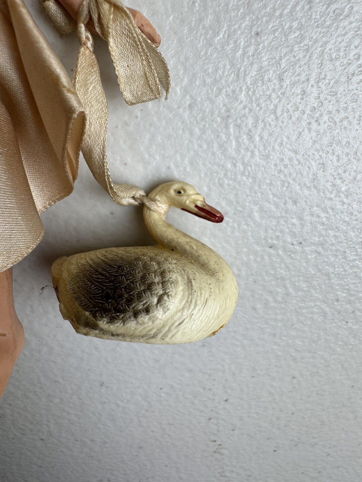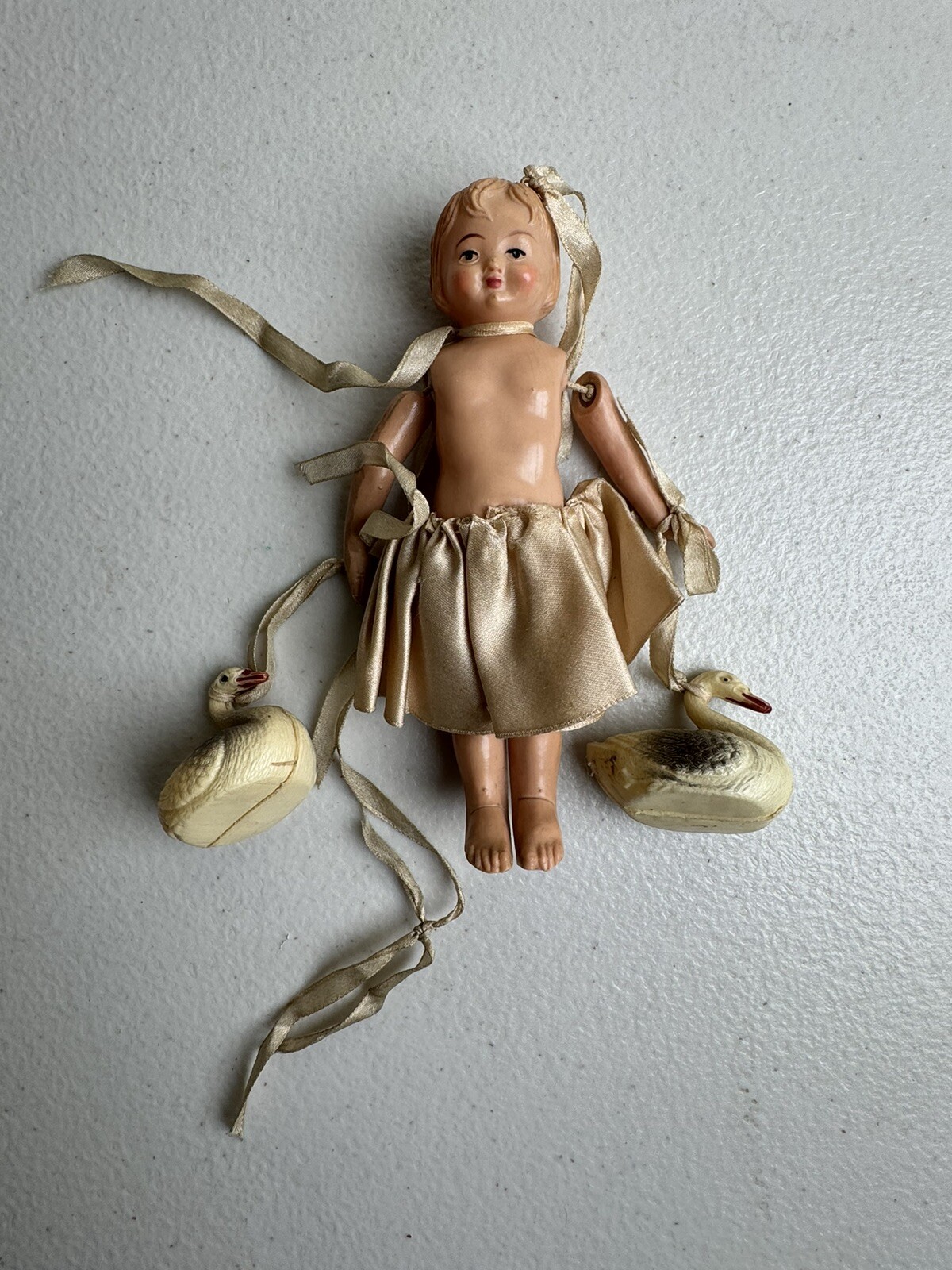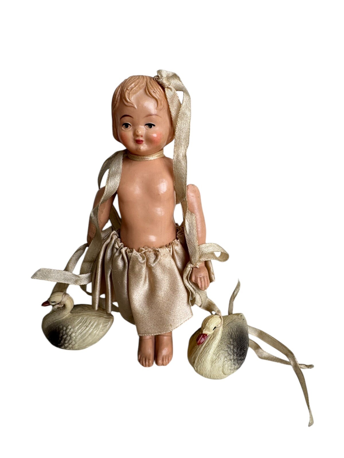 как выглядит Early Vintage Girl Holding Two Gooses Celluloid Toy 1920s Made In USA фото
