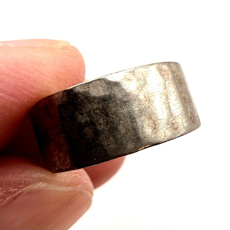 как выглядит Vintage Signed M 925 Sterling Silver Hammered 1/4 inch Wide Band Ring Size 7 1/2 фото