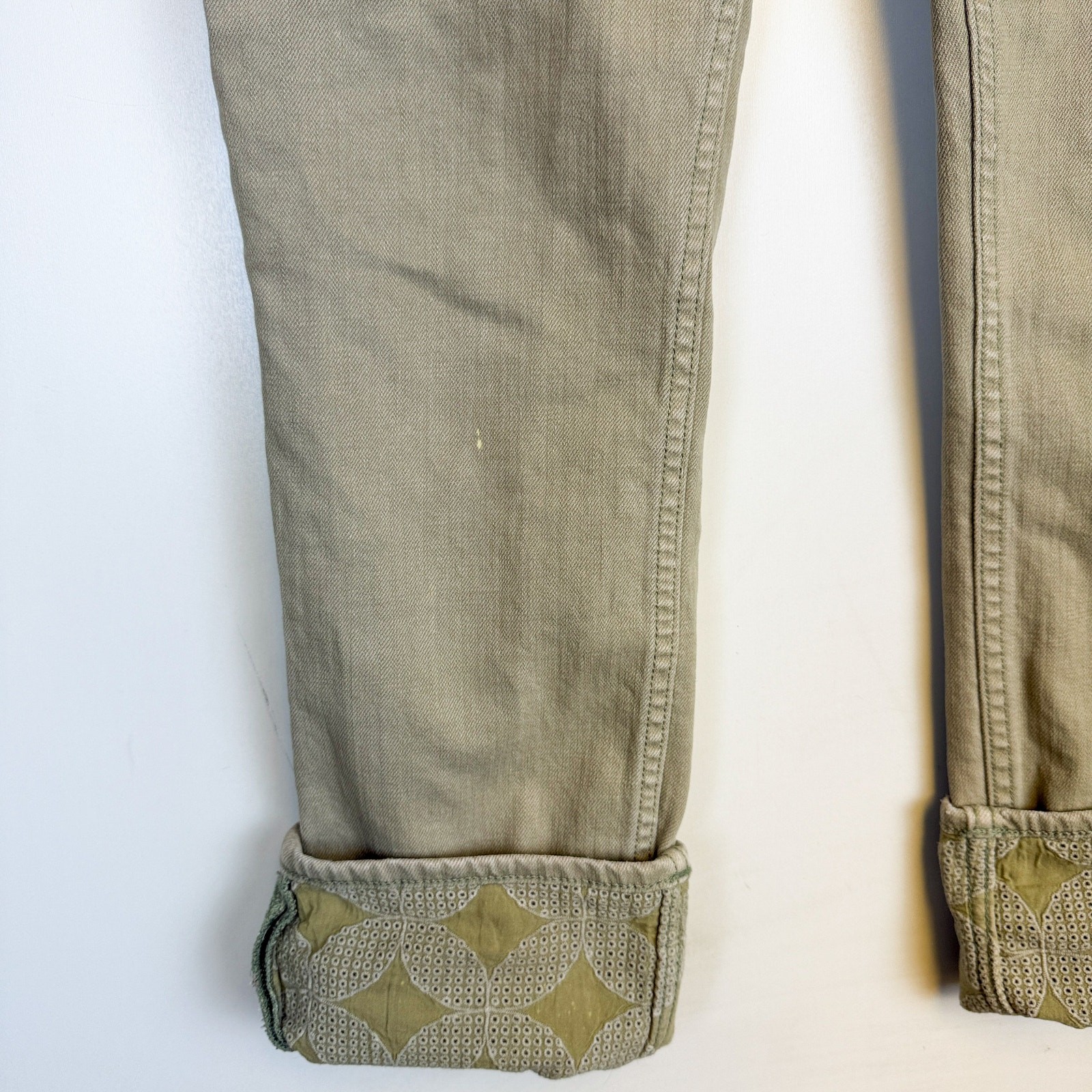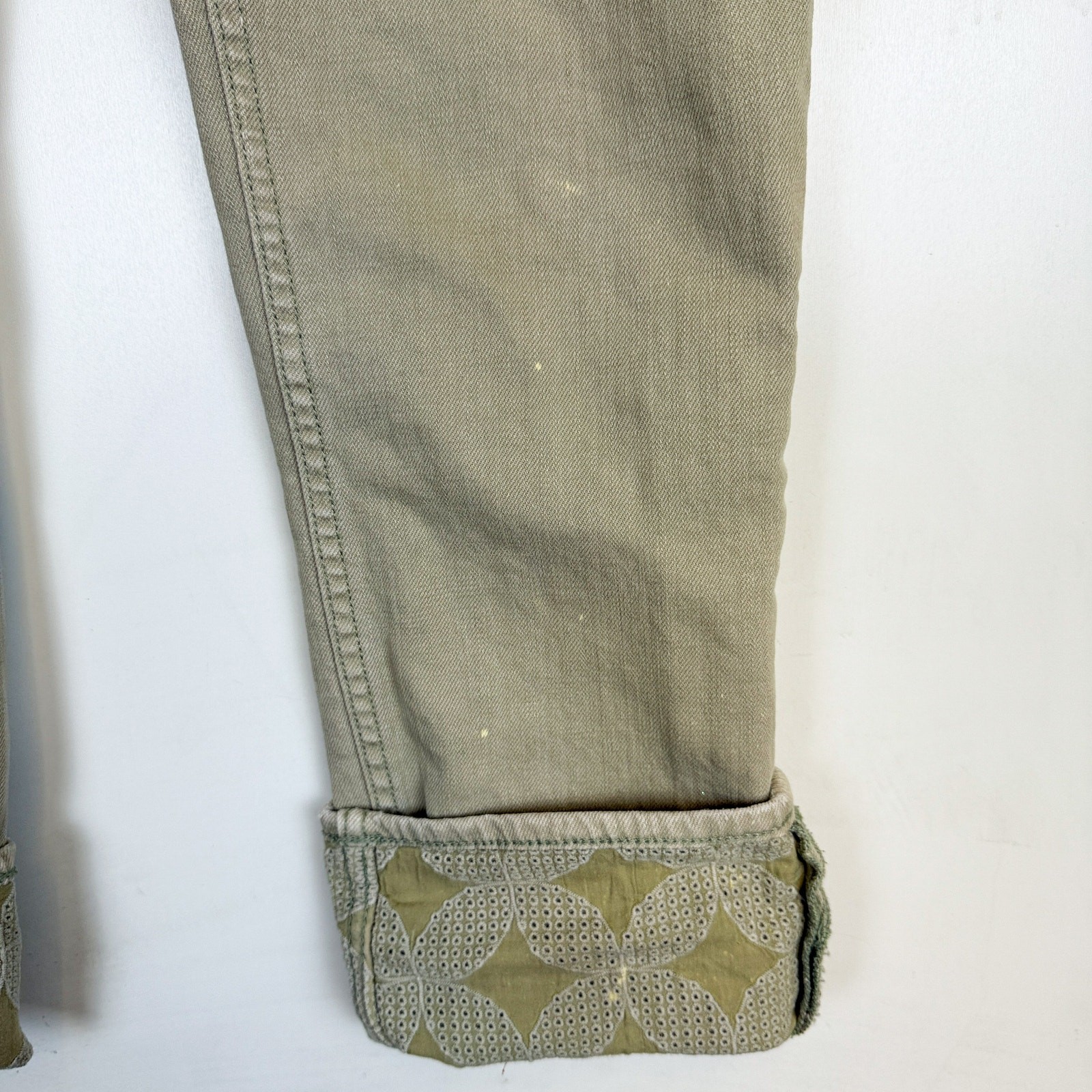 Johnny Was Reina Cuffed Sage Green Boyfriend Jeans Embroidered FLAWS - 27