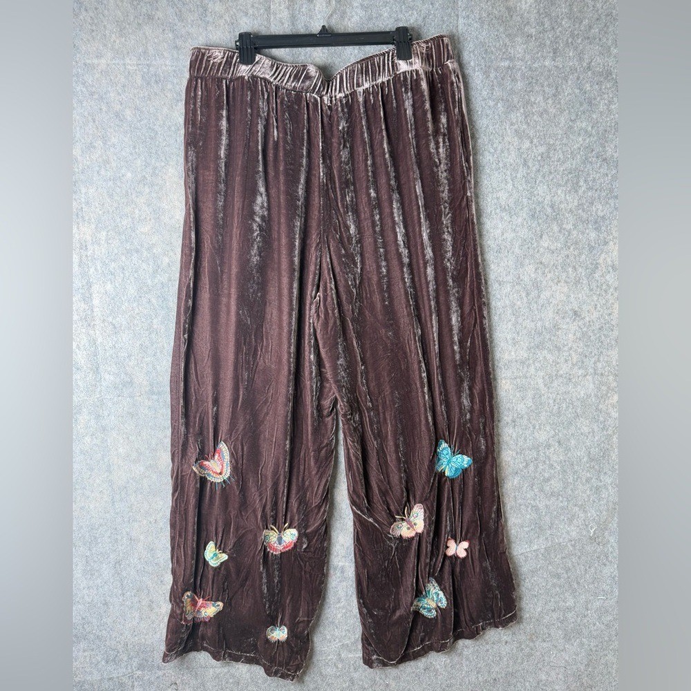 как выглядит Johnny Was Womens Size XXL Brown embroidered Seamed Wide Leg Silk-Blend Pants фото