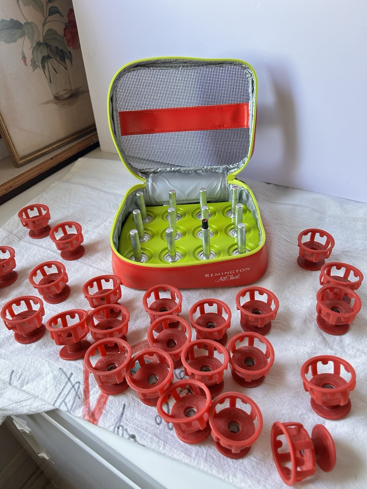 Remington All That Spoolies Wrap N Roll Curlers Self Locking Hot Rollers In Case