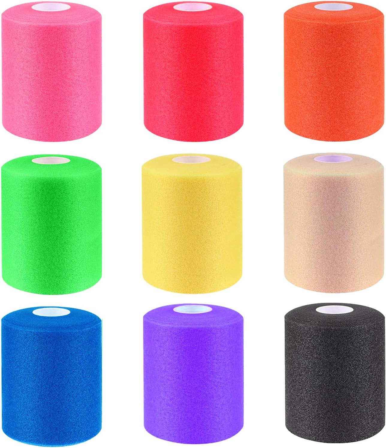 9 Pack Pre Wrap Athletic Tape 2.75 Inch x 12 Yards Multi Color Foam Underwrap Ta