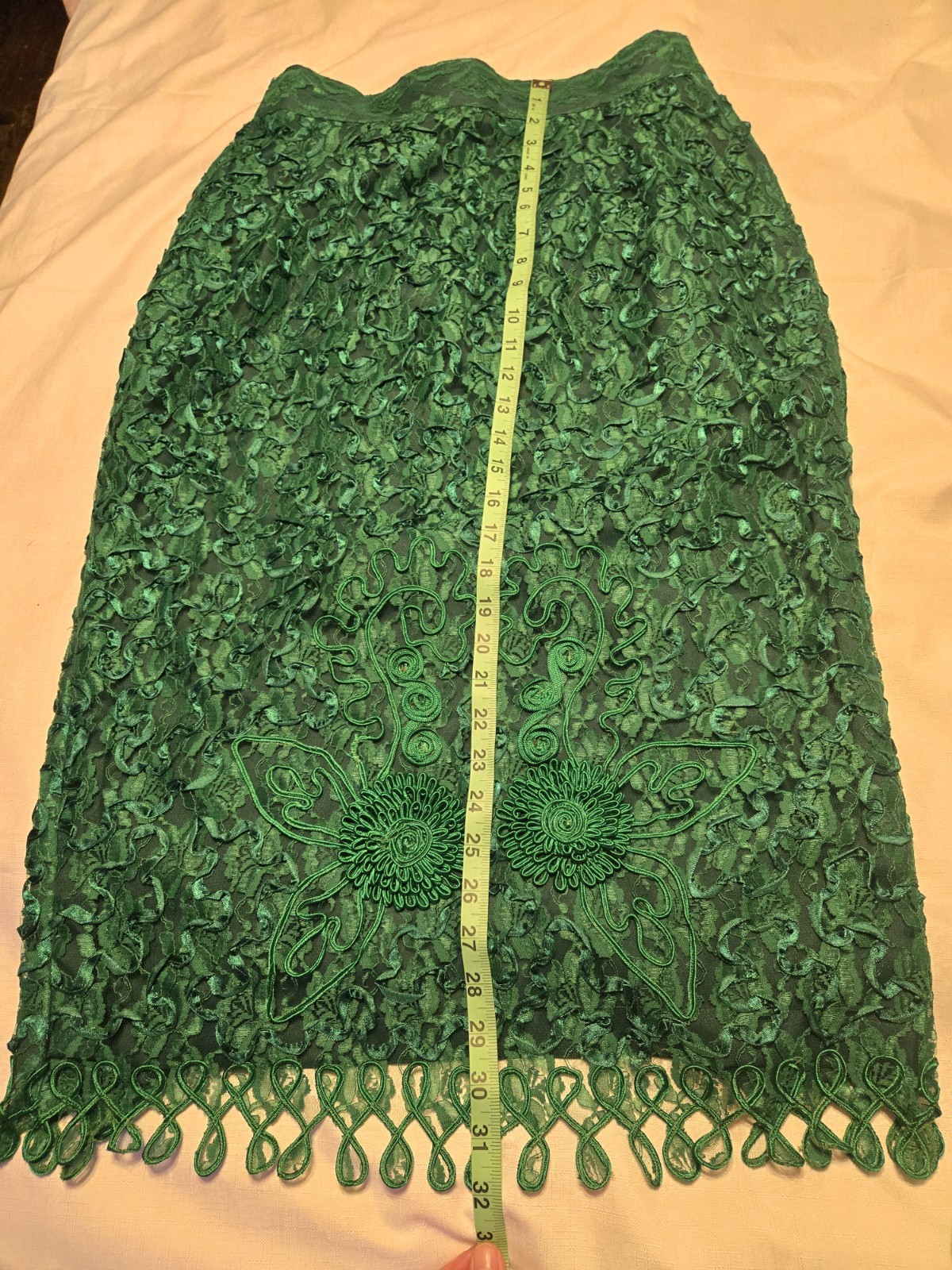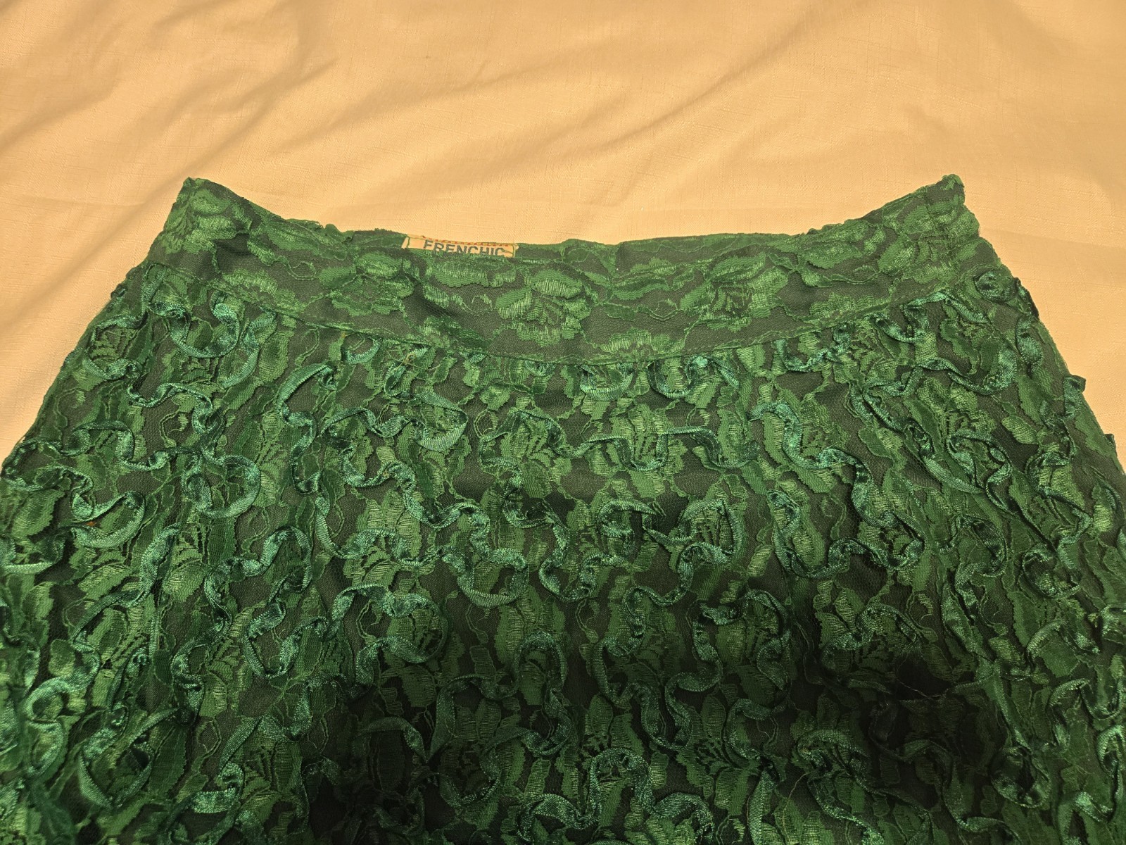 Emerald Lace Pencil Skirt Green Floral Embroidery Knee Length Lace Frenchic 12